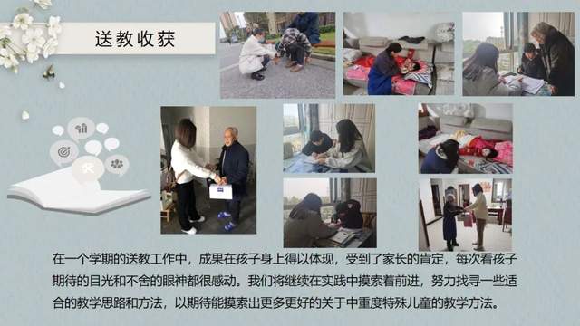 每次看到孩子们脸上洋溢着开心的笑脸,看到孩子们期待的目光和不舍的眼神,家长对老师的肯定,都让送教小组的老师们深深感动,心中荡漾起无边的幸福!