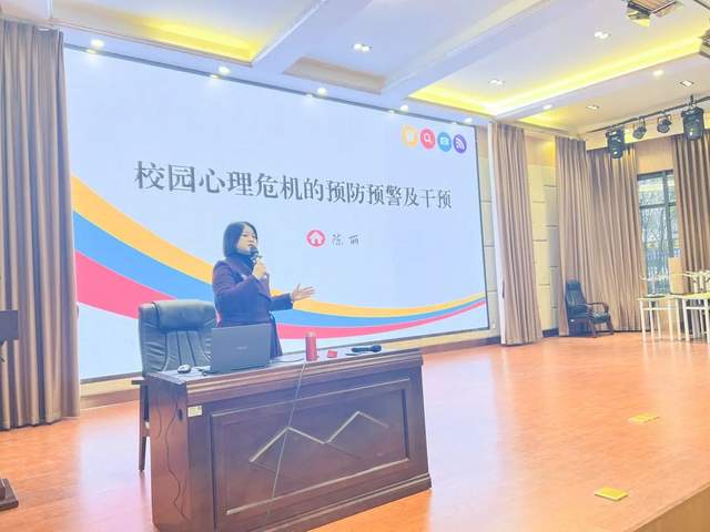 2023年1月10日上午,龙池学校邀请成都市教科院心理教研员陈丽前来做主题为《校园心理危机预防预警及干预》的心理健康教育教师培训讲座。