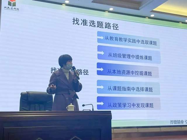 易恩主任建议学校分解区域性课题,鼓励老师开展校级课题研究与教师的小课题研究,将研究做在活动中、管理中、教学中,生活中不缺少美,只是缺少发现美的眼睛,研究也是如此,我们的工作中不乏值得探索的问题,相反,一线教师的研究取材十分广泛,只要我们聚焦问题,投放具体策略,便能形成自己独特的研究,从而使促进自身的教学成长和学生的发展。