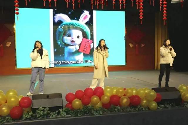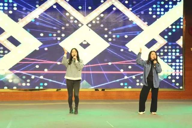 怀着快乐的心情,英语组的歌曲串烧带领全体教师在那跳跃的音符中寻找彩虹般的微笑。