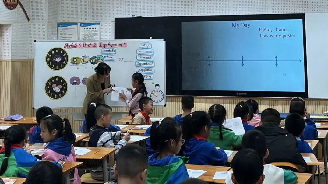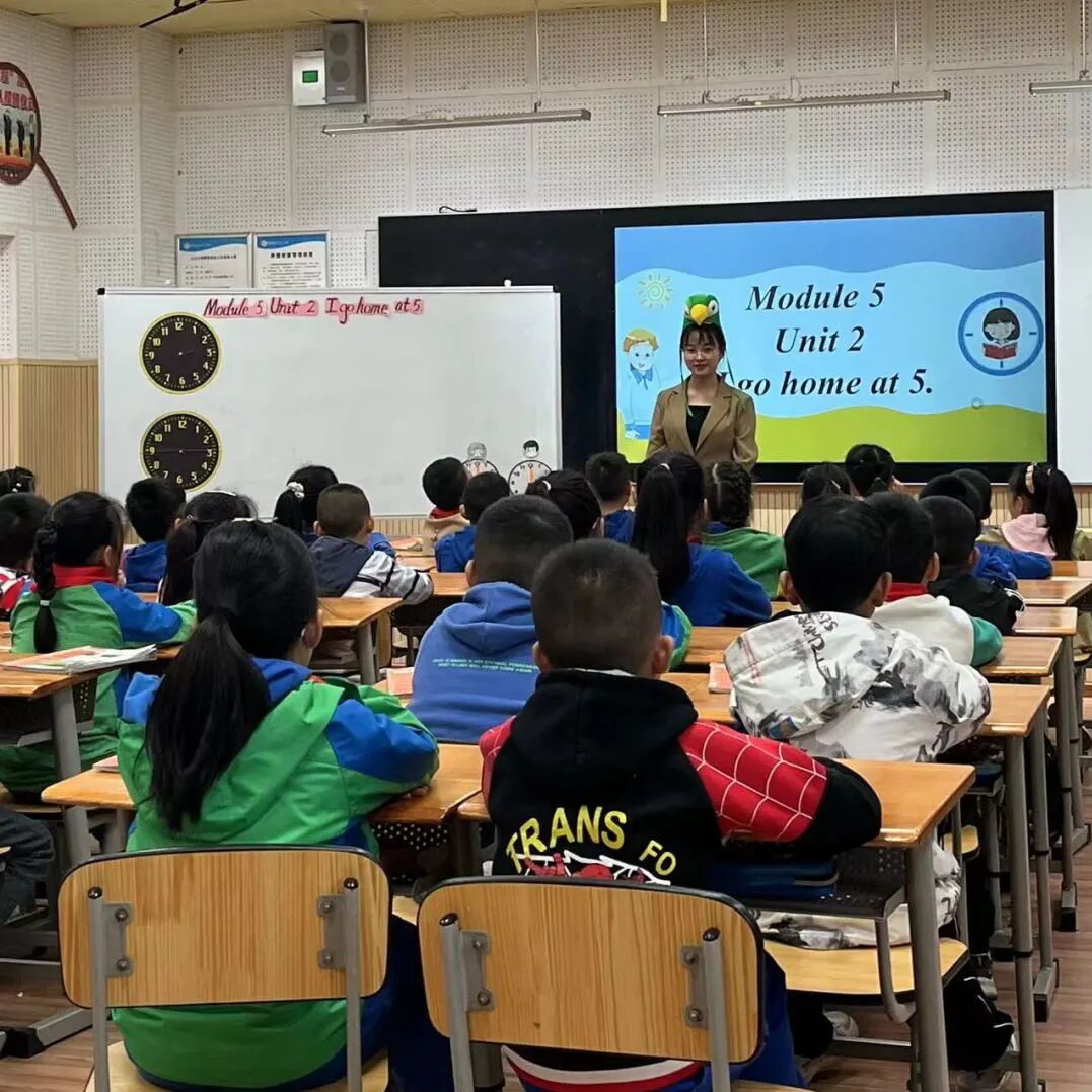2023年10月26日上午,英语组老师齐聚一堂,观摩了彭淅老师与二年级三班的孩子带来的Module 5 Unit 2 I go home at 5.