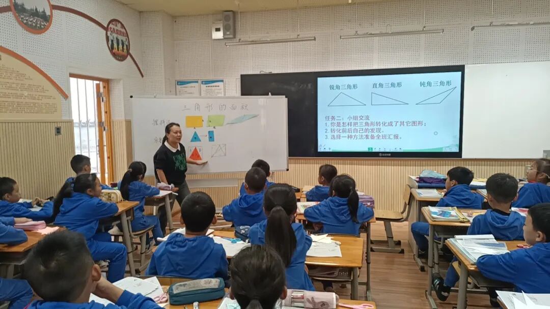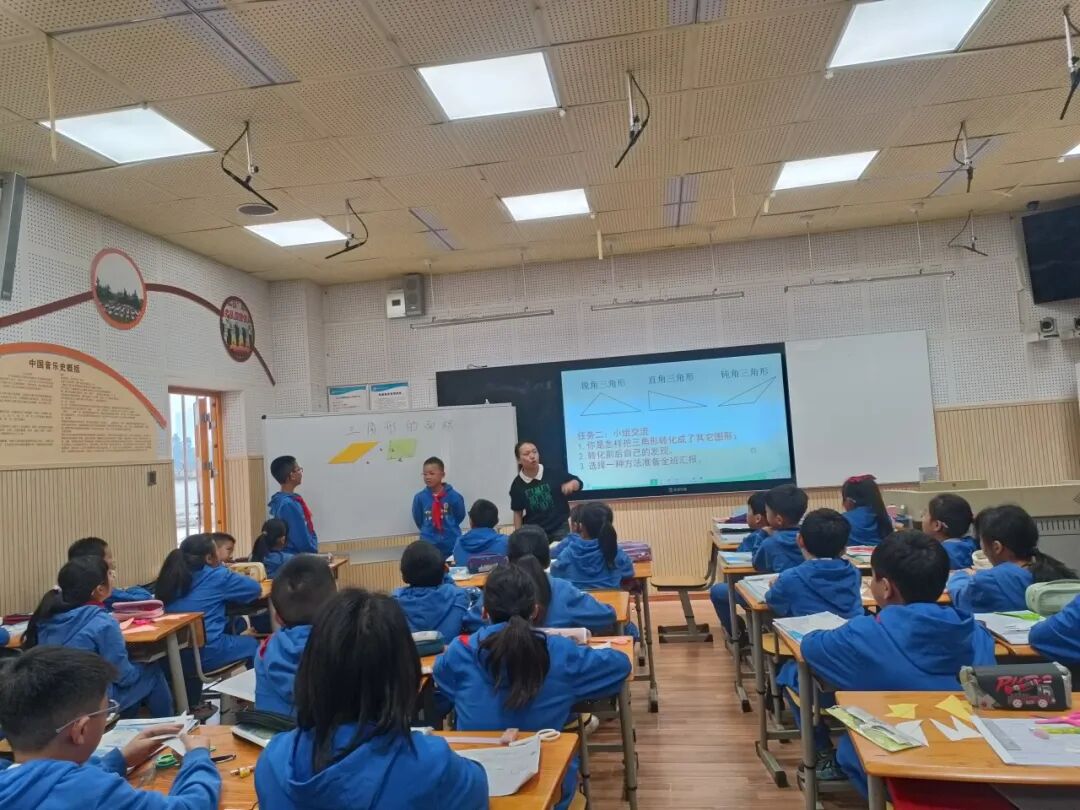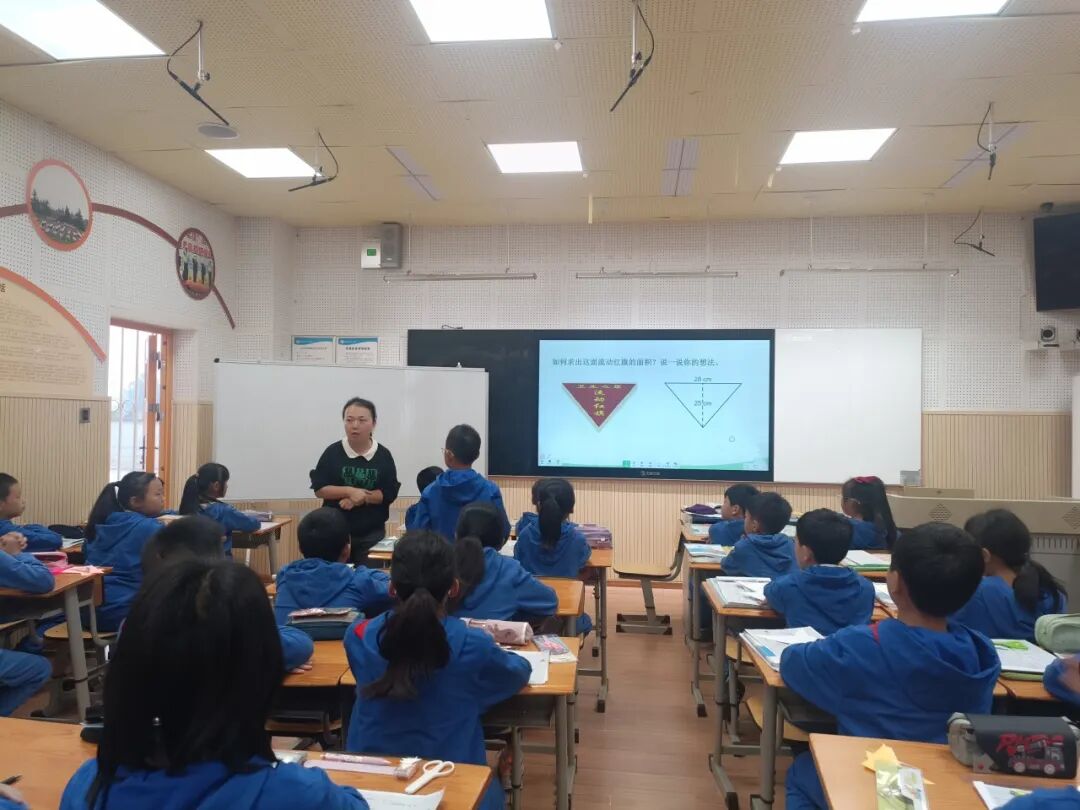 2023年10月24日,五年级数学组齐聚录播室,观摩郭莉老师和五年级三班的同学们,带来课例《探索活动:三角形的面积》。