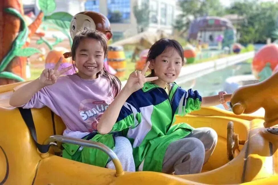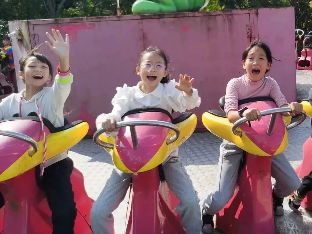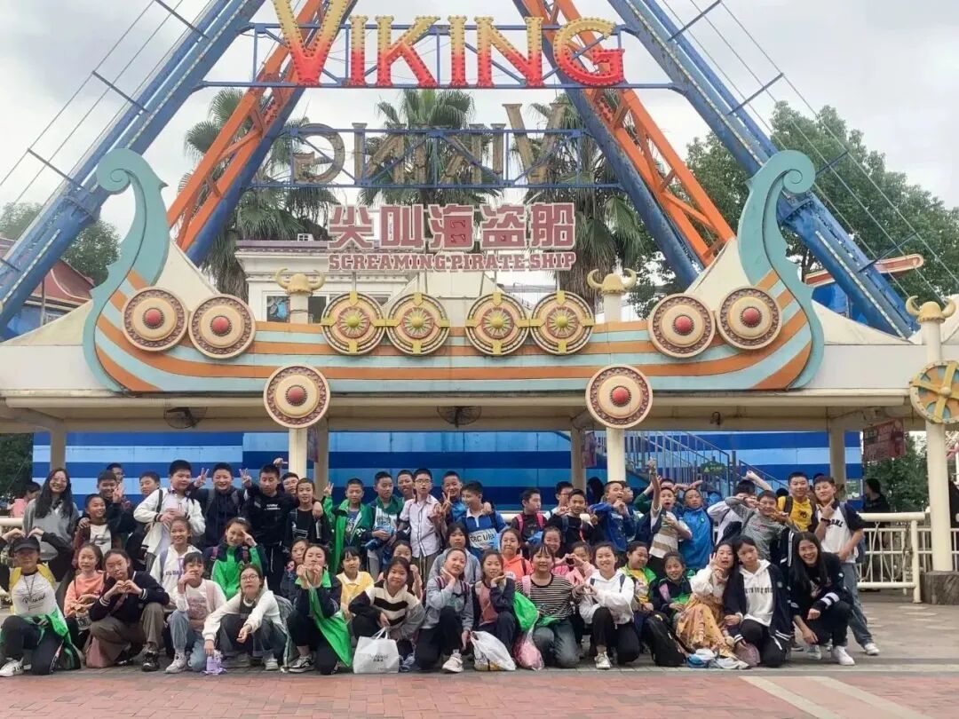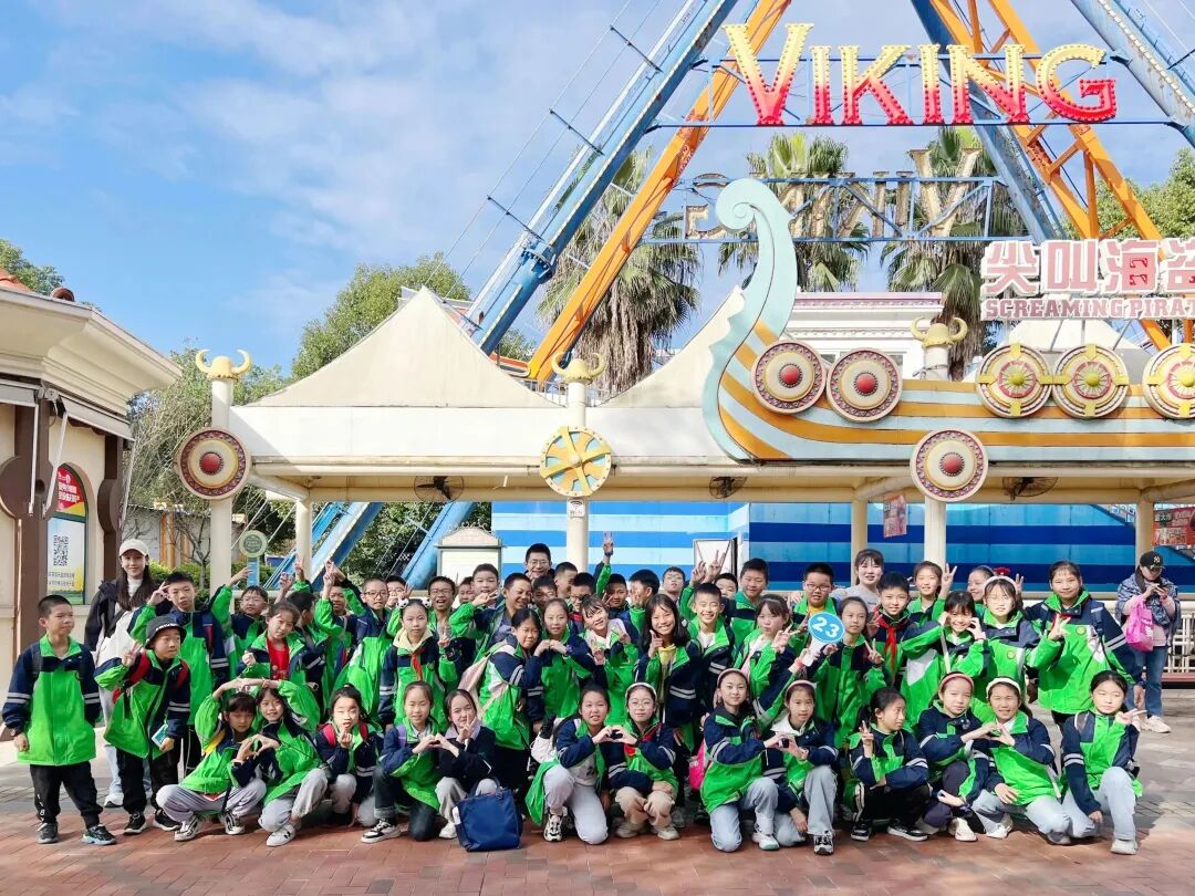 国色天香陆地海洋公园中,高段的同学们在极限摩托过山车中骑着过山车在蜿蜓盘旋的轨道上尽情冲刺;坐上全新升级的水上过山车,感受超大的双冲式海啸滑道;眼境蛇过山车中与“眼睛蛇”一起进行速度与激情的感官体验;云霄马戏团的极限翻滚更是让同学们尽情享受到畅游空中的疯狂……