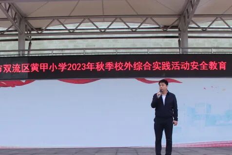 上午8时,全体黄甲师生齐聚操场,做着出发前的最后准备。陈锋校长对本次校外综合实践活动进行了全面、细致的安全教育并祝愿同学们能在活动中体验快乐、收获成长。