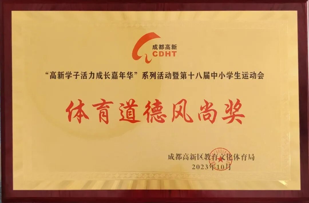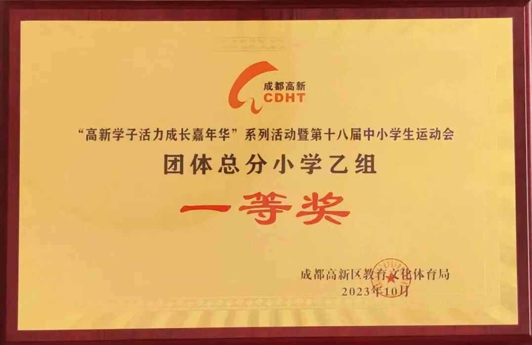 成都高新区朝阳小学在“高新学子活力成长嘉年华”系列活动暨第十八届中小学生运动会中荣获乙组团体“一等奖”及“体育道德风尚奖”。