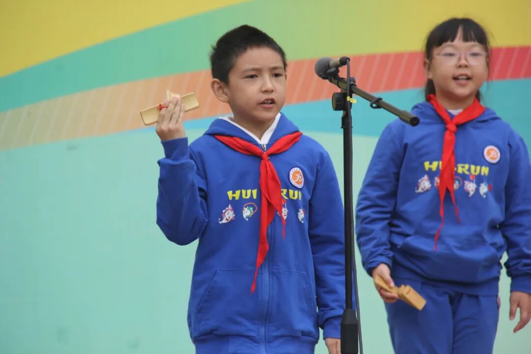 四年级一班同学结合本次爱护公物的主题,表演了第一个节目,情景剧——《桌椅的对话》,在夏林西和沈玥萱两位同学活灵活现的表演中,同学们知道了要爱护桌椅,结尾顺势引出第二个节目——“三句半”。