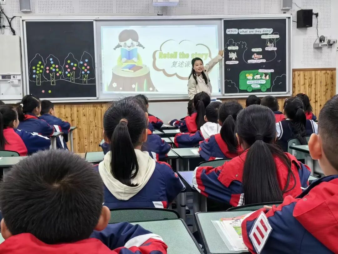 接着第三节课是由洋汉蓉老师带来的四年级Module3Unit1 What are they doing?洋老师深入文本, 注重学生思维品质和文化意识的培养,教学设计层层铺垫,环环相扣。整个教学过程条理清晰,老师利用歌曲、视频、游戏等方式,鼓励和带动学生深度参与课堂。整节课学生参与度高,课堂气氛活跃,充分体现了学生的主体地位。