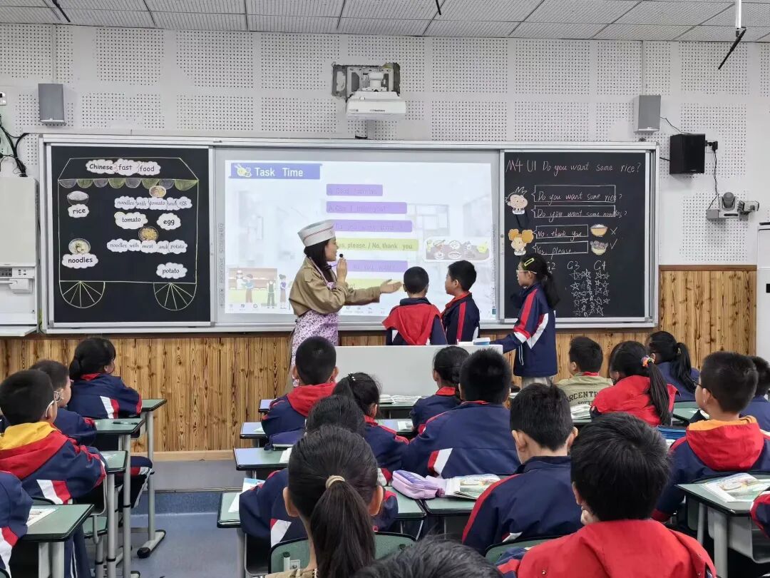 第一节课是由张玥老师带来的四年级Module4 Unit1 Do you like some rice?张老师从本模块主题入手,注重情景创设和学生的情感体验,设计了丰富多彩且贴合学生生活实际的教学活动。整堂课重难点突出,注重语言知识的运用和理解,真正做到了学以致用。