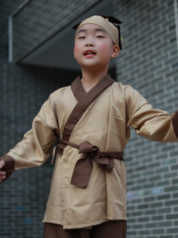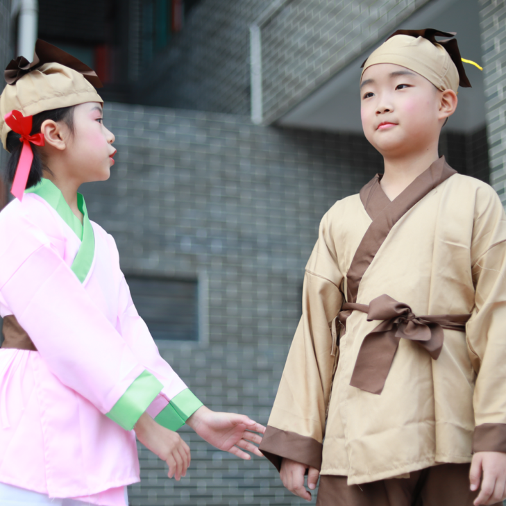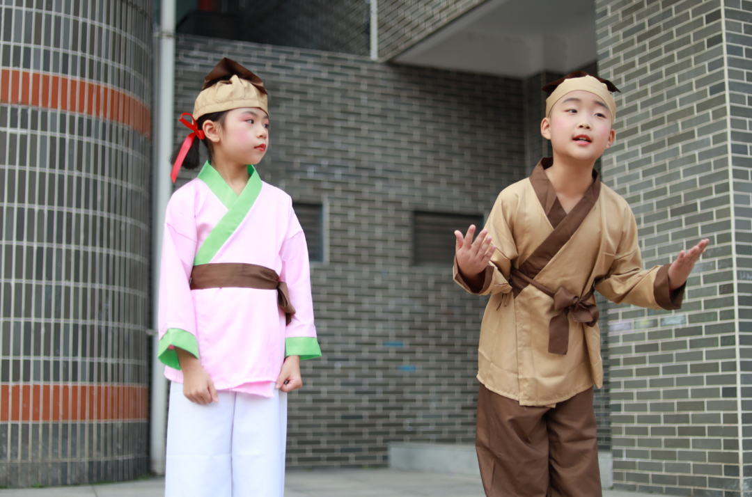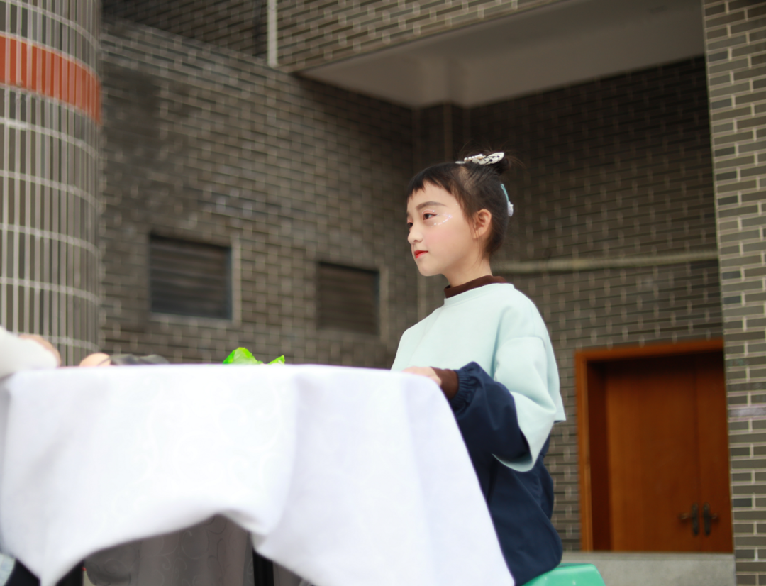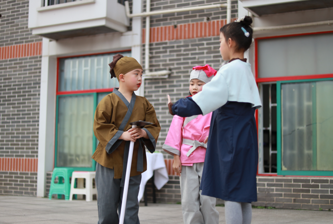 01咦?当现代浪费粮食的萌娃遇上古代辛勤耕地的大小宝,他们会有怎样的对话呢?瞧!孩子们用幽默、富有感染力的表演,把大家的注意力都吸引到他们身上啦。