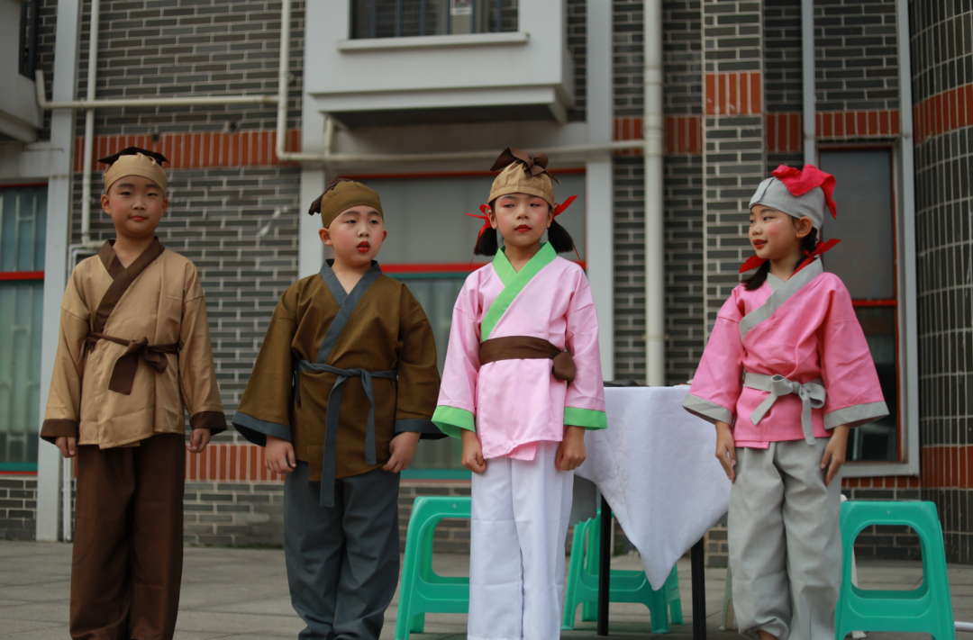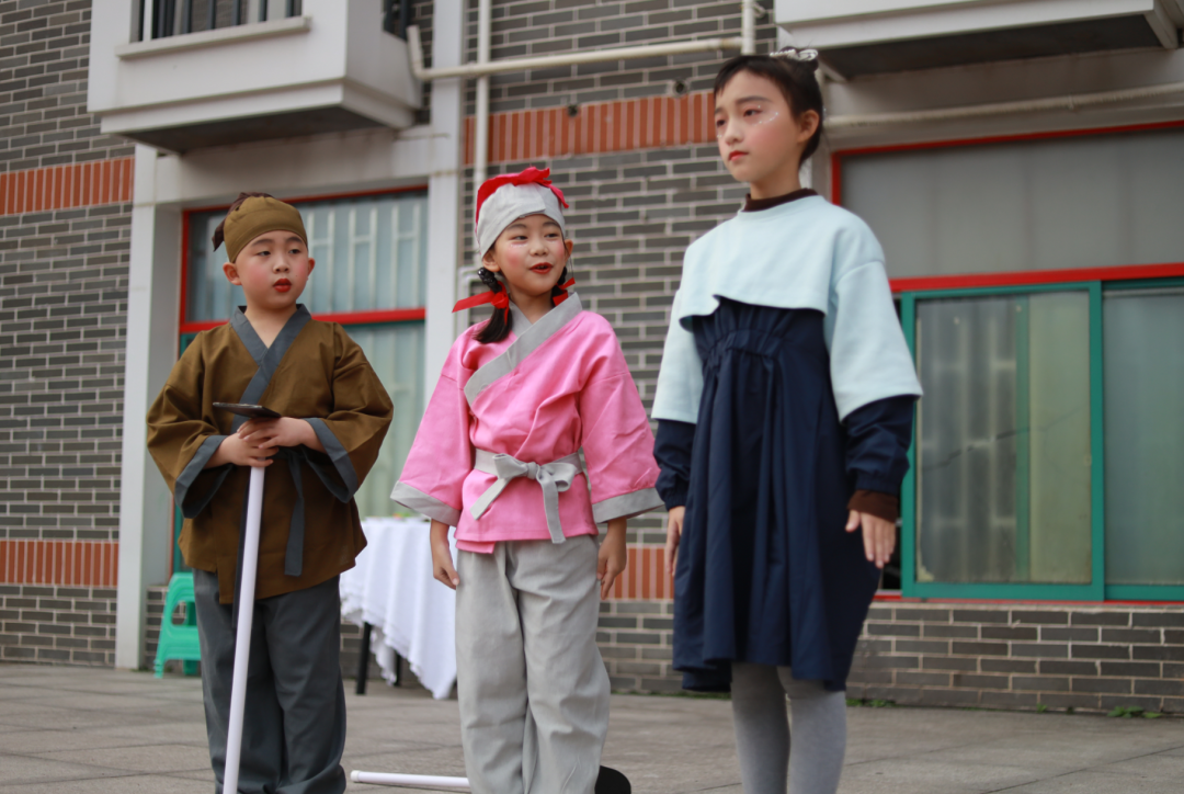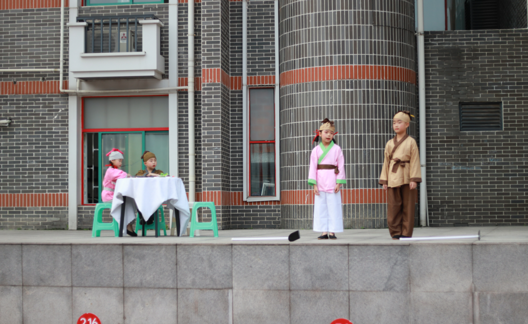 “锄禾日当午,汗滴禾下土。”这句家喻户晓的古诗,变成一幅幅精彩的画面,在金秋十月的清晨,生动上演。台上几位同学惟妙惟肖的表演不但生动地诠释了剧中的每个角色,而且那诙谐幽默的语言更是把台下的观众逗得哈哈大笑。寓教于乐的节目让孩子们深刻地领会了勤俭节约的道理。