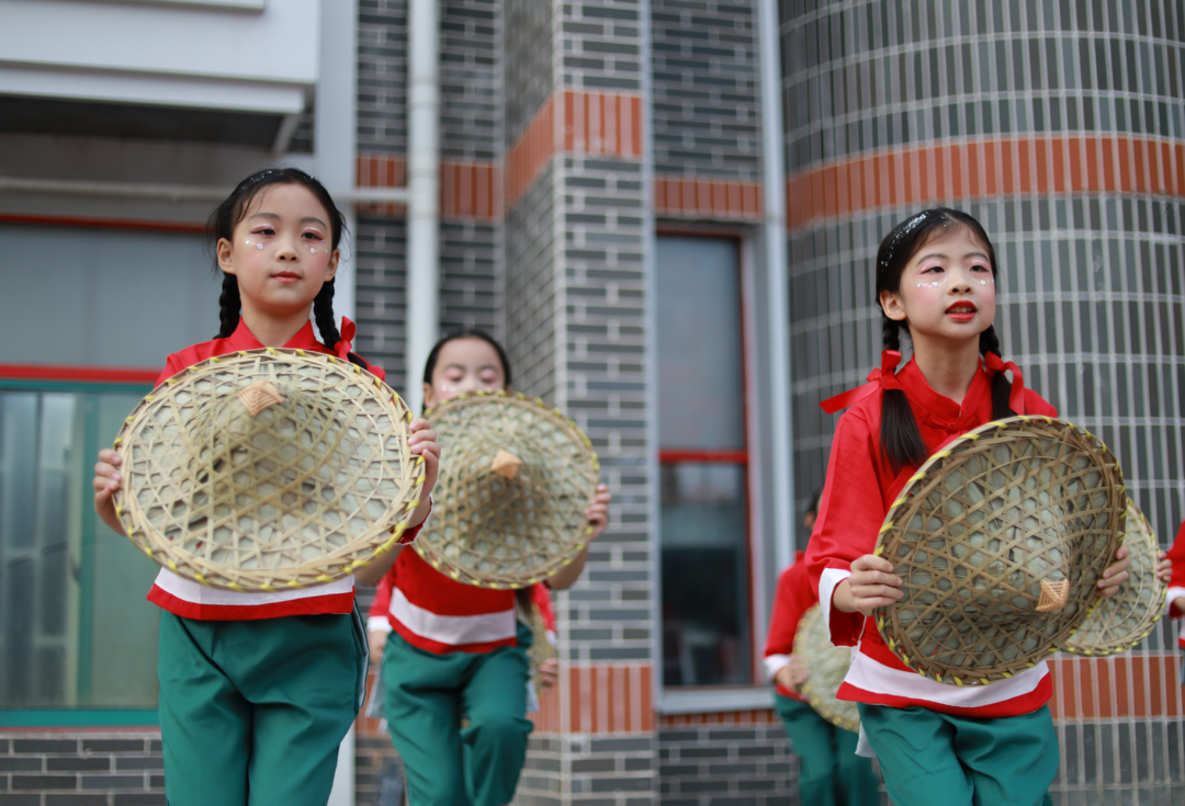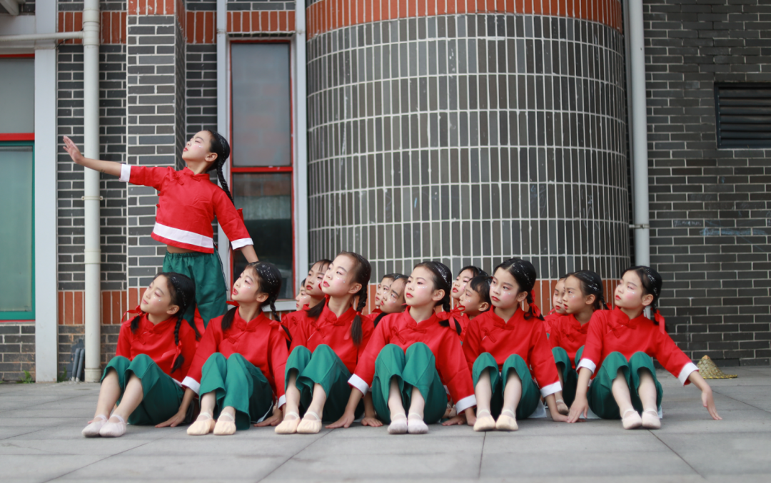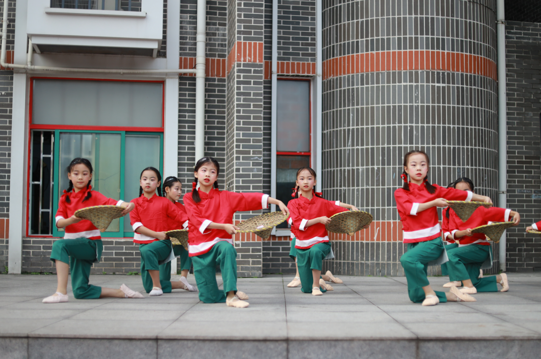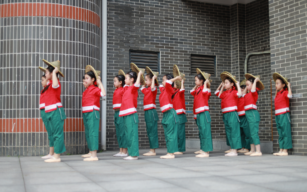 03看!舞台上出现了一群灵动活泼的小姑娘,她们正顺着稻田蔓延的方向“播撒穗苗”“躬身耕作”,姿态优美,轻盈欢快。