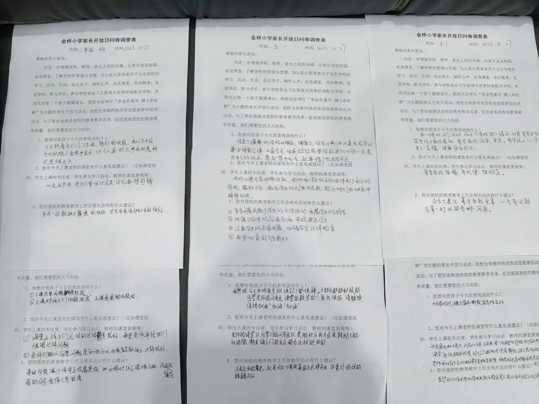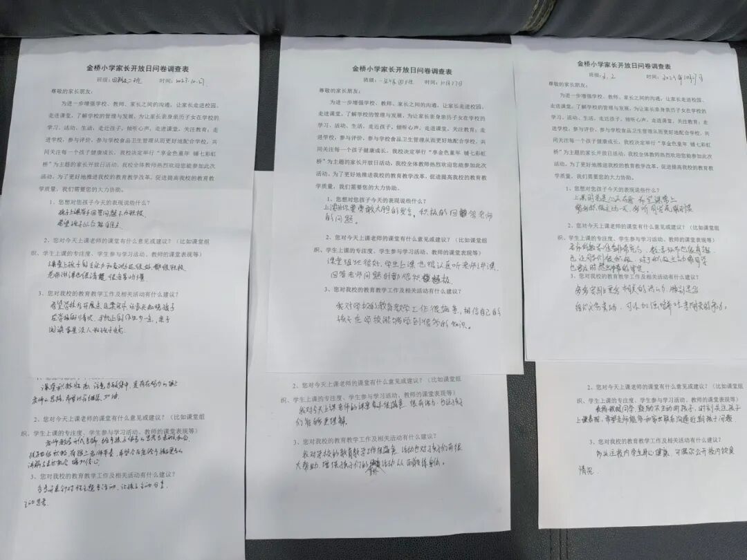 家长们认真填写了问卷调查表。从统计结果来看,家长们对这次“开放日”活动的组织非常满意,对学校的教育教学工作给予了高度评价。他们一致认为让他们亲自走进课堂,亲自参与学校的教学活动,可让他们更好地了解教师的教学情况和学生的学习情况,增强了学校与家庭之间的了解,增进了家长与孩子的沟通,希望以后多举办一些这样的活动。