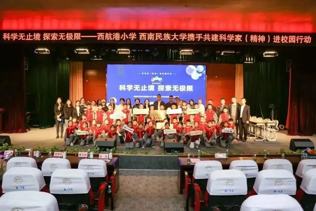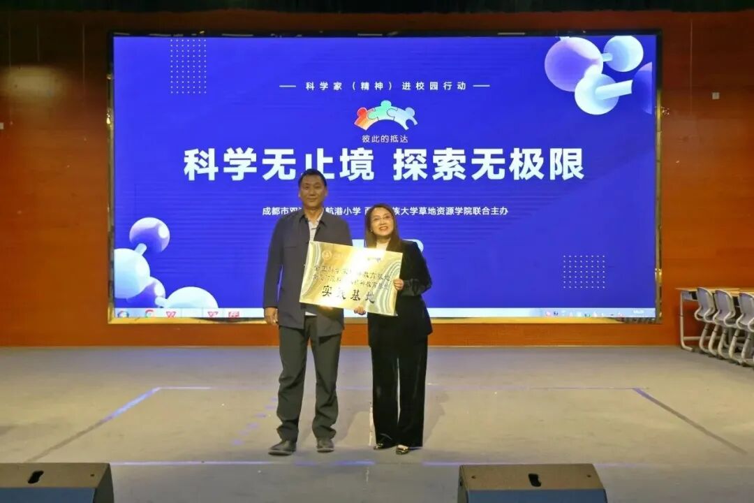 在大家的见证下,成都市双流区西航港小学正式成为西南民族大学科学家精神教育基地的第一个实践基地,并举行了隆重的授牌仪式。