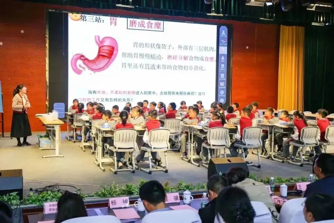 西航港小学学科带头人李文静老师带来了一节生动有趣的科学课《食物在身体里的旅行》。4.1班的孩子们在李老师的带领下,通过模拟、观察食物在口腔-食道-胃-小肠-大肠的变化,最后通过肛门排出体外,让孩子们知道了食物在人体内完整的消化过程,加深了对人体消化器官认识,掌握了正确吃食物的方法,明白了保护我们消化系统的重要性。