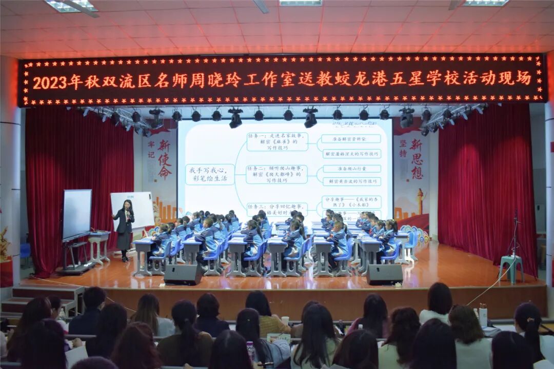 温柔的秋风轻拂脸颊,温和的秋阳暖透心扉。为充分发挥名师工作室的示范引领与辐射带动作用,促进语文教师队伍教育教学专业水平提升,2023年10月31日,在周导的带领下,周晓玲名师工作室全体学员齐聚双流区蛟龙港五星学校,开展送教活动。