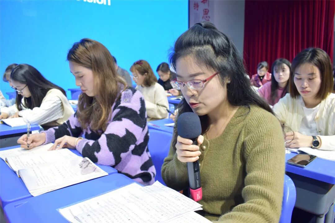 课堂观摩结束后,两位上课老师对自己活动设计意图及教学效果进行了解读和反思。五星学校的老师也结合自己的教学实践,提出了自己的困惑。周导对老师们的疑惑给予了细致入微的解答,她指出:在新课程标准理念下,我们要重点培养学生的能力和素养,要培养学生的自主学习能力,就要变教为学,把学习空间、学习时间、学习主动权、学习兴趣还给学生,让学生在学中体验,体验中学。教学中要做到学生会的不讲,讲了也不会的不讲,精讲学生不易理解的重难点内容。要注意大单元教学的层级性,通过单篇教学,落实好单元的语文要素,重视学生的思维发展。
