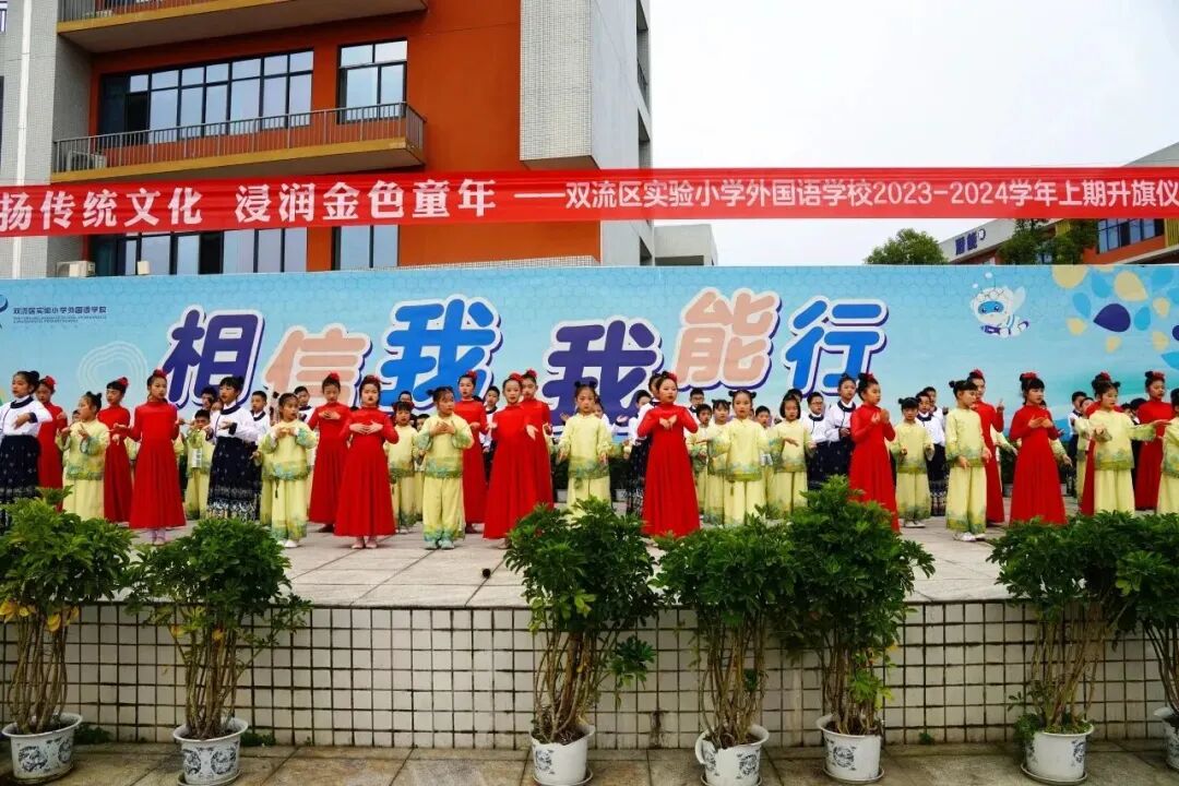 10月30日上午,双流区实验小学外国语学校全体师生聚集在操场,进行一周一次的升国旗仪式。伴随着雄壮的《义勇军进行曲》,升旗手把鲜艳的五星红旗缓缓升起,少先队员行队礼,非队员行注目礼,将对祖国母亲的爱意寄于这深深的凝视中。