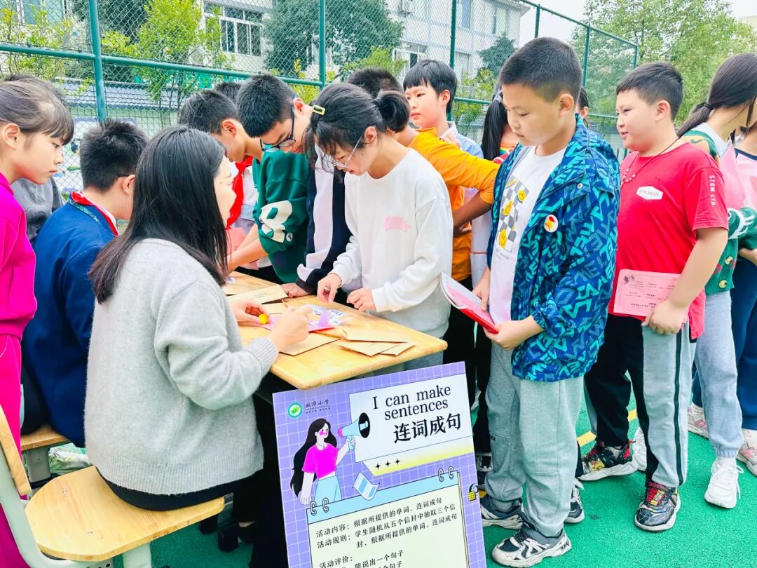 三、四年级设计了英语知识问答、单词拼图、英文歌曲我来唱等闯关活动,既激发了学生们的学习兴趣,又提升了语言表达和运用能力。学生们在学中玩,在玩中学,纷纷表示在活动中不仅学到了很多英语知识,还找到了学习英语的乐趣和信心。