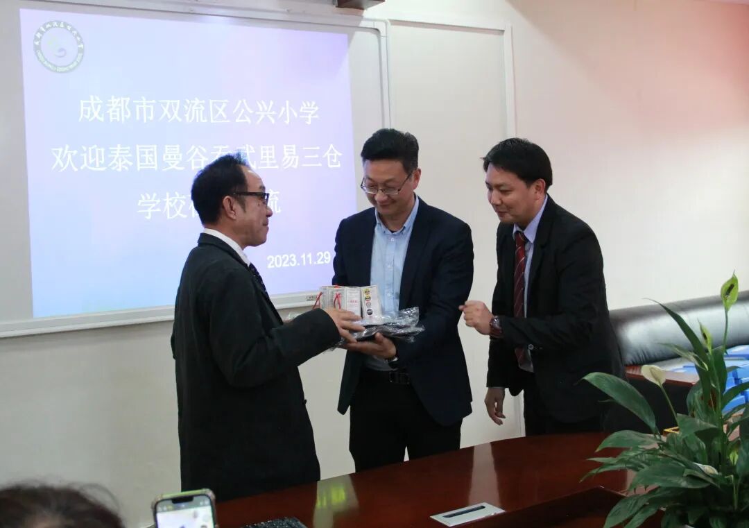 登高放眼天地宽,携手并进前路阔。2023年11月29日,在明朗的秋日下午,成都市双流区公兴小学迎来了远道而来的友人——泰国曼谷吞武里易三仓学校校长和他带领的20余人访问团。