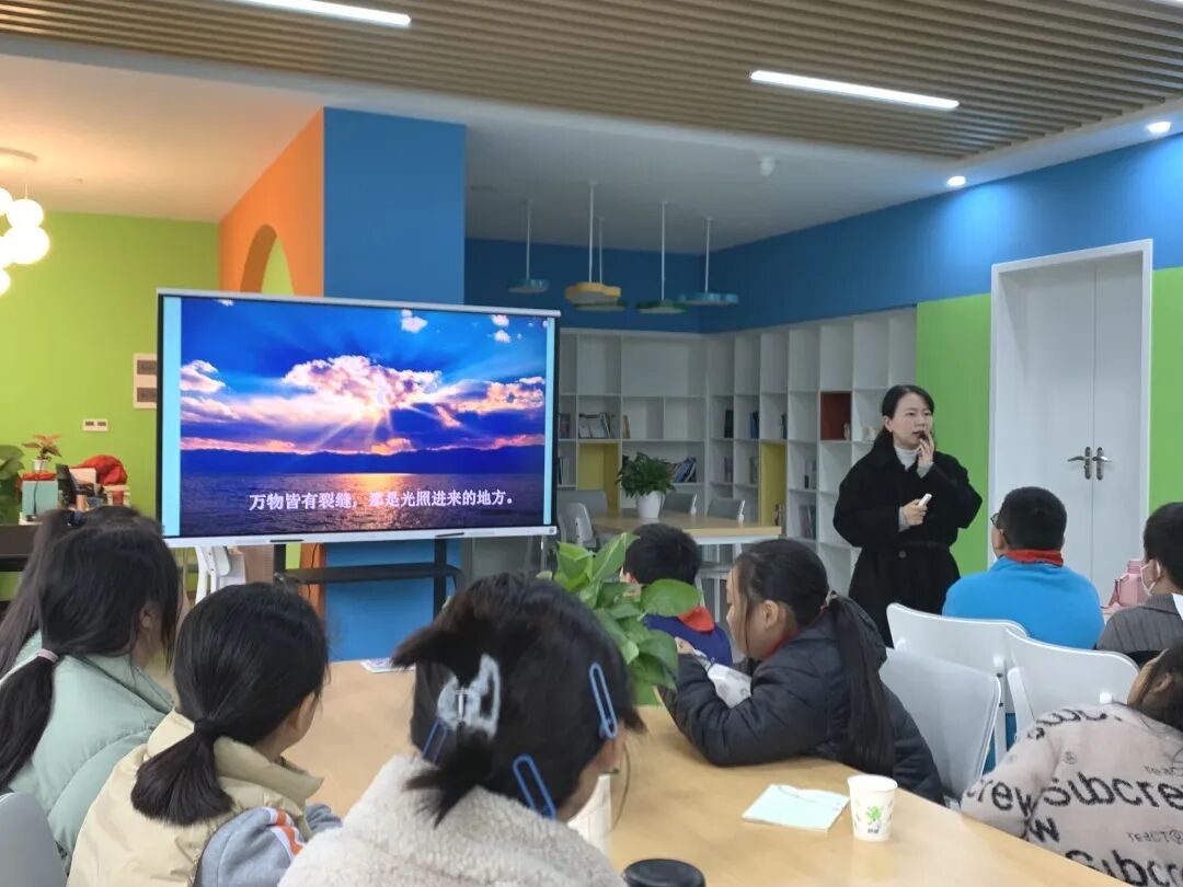 活动尾声,李老师播放了汶川地震中“可乐男孩”的视频。让学生分享收获,有的孩子表示以后会乐观地面对困难,有的孩子表示会让自己的想法变得更加积极一些。最后,李老师送给孩子们一句话:万物皆有裂缝,那是光照进来的地方。孩子们全部沉默不语,深深地看着李老师,眼神里充满着感动的情绪。