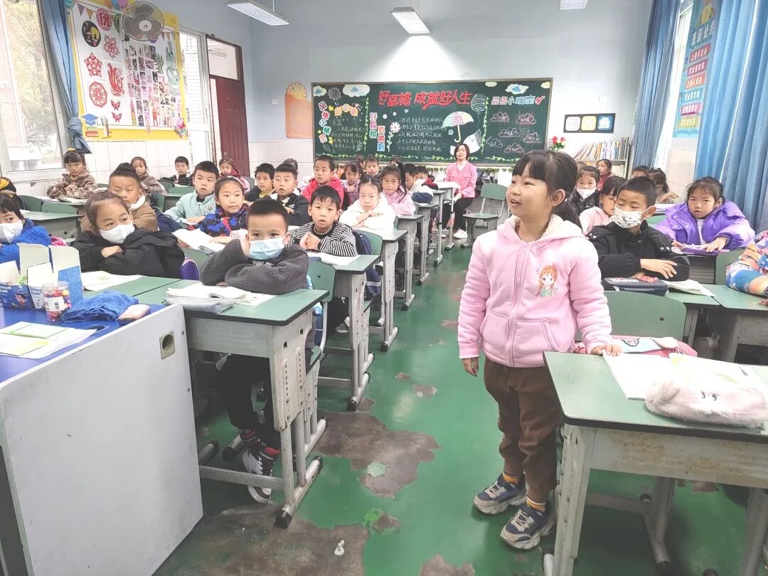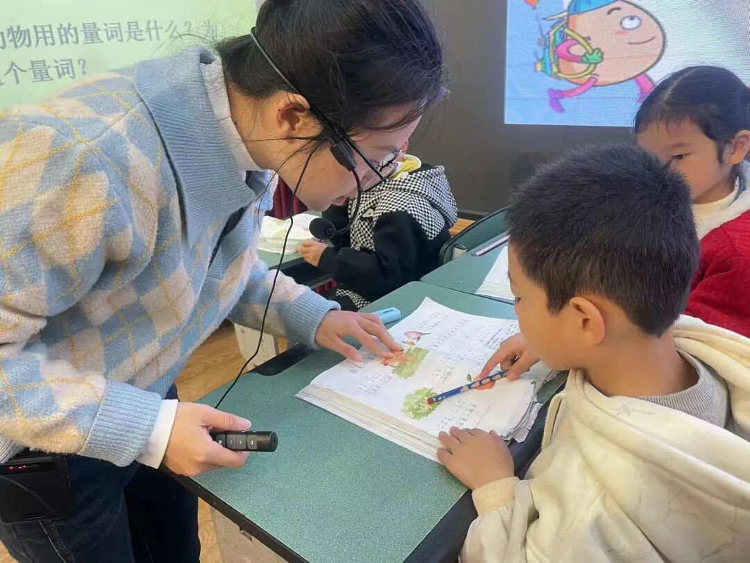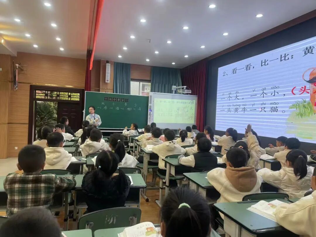 课堂上,陈老师在带领学生参观“开心农场”,在这一学习情境下,学生走进了课文《大小多少》,通过初读课文读准字音,读通句子,标记勾画;通过归类识记,图文对照等方法,记住课文中“牛大、多、少”等生字,初步感受量词的使用,最后,通过仿说课文句式,练习表达。学生通过这节课的学习,掌握了记住生字的方法,初步认识了量词的正确使用,增强了在生活中主动使用量词的意识。