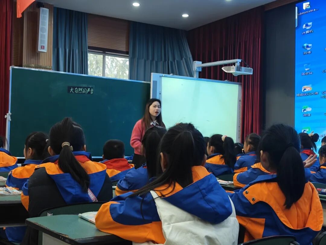 王老师首先从单元思维导图导入,让学生对本单元的内容有了初步的了解。紧接着,王老师紧扣单元语文要素,以读促悟。让孩子们读通读顺,再引导孩子们联系生活,想象画面,在读中体会风声之妙。通过小组合作的形式,让孩子们感受水声之趣。整堂课采用形象直观的图文以及视频结合方式,让孩子们对大自然的声音直观感受,小组读、个人读、男女赛读等多种形式朗读,书声琅琅,学生情绪高涨,兴致勃勃,有效达成了教学目标。