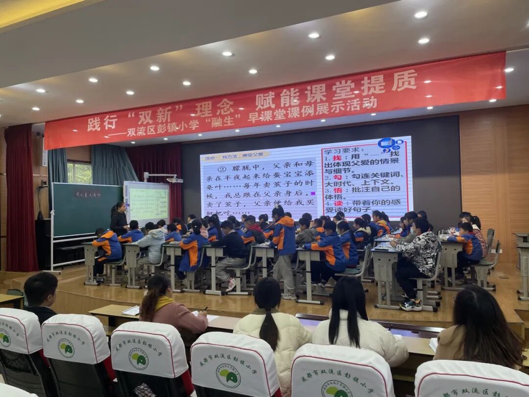 《义务教育课程方案(2022年版)》和《义务教育课程标准(2022年版)》的发布给义务教育教学内容和方式带来了新的变革。“双新”背景下,彭镇小学以教研作为课程改革的重要支撑,推进教学改革,转变课程育人方式,促进教育教学高质量发展。为落实“双新”,助力“双减”,2023年11月20日至24日,双流区彭镇小学开展了“融生”早课堂教学研讨活动,打造扎实高效的常态课堂,以不断促进教师的专业成长。