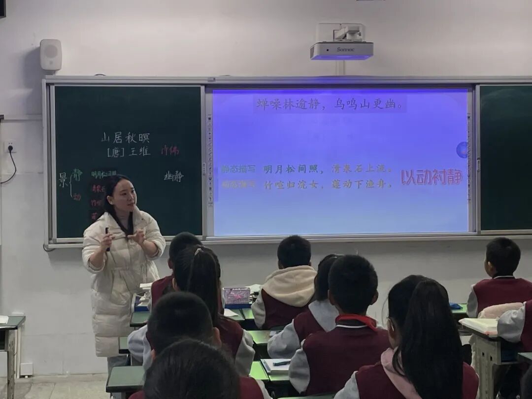 张老师紧紧围绕单元语文要素,通过解诗题、知诗人、读诗文、明诗意、悟诗情等环节,让学生感受到古诗的美和内涵,也体会到以动衬静中山的幽静,更明白了王维诗佛称号的由来,整个课堂真实灵动、书声琅琅。