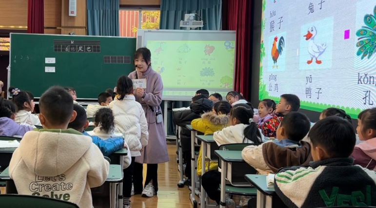 课堂上,林老师通过看图片、联系生活等方式引导学生认识生字;在声情并茂的朗读中体会问号的表达效果,初步建立句子概念。随后,带领学生做问答游戏,在有趣的一问一答中,抓住事物特点,积累语言。整堂课,教师适当的点拨,亲切的示范,让学生在轻松愉快的情境中收获,有效培养了学生的识字能力和朗读能力。