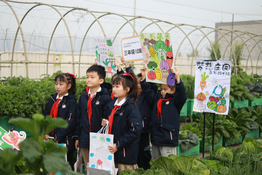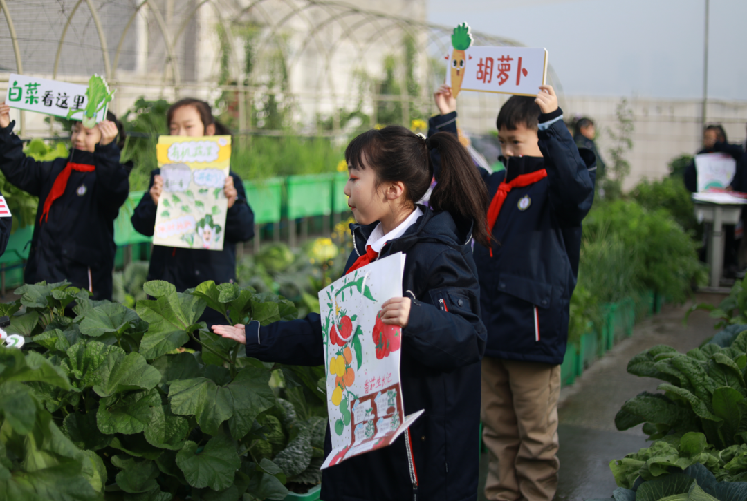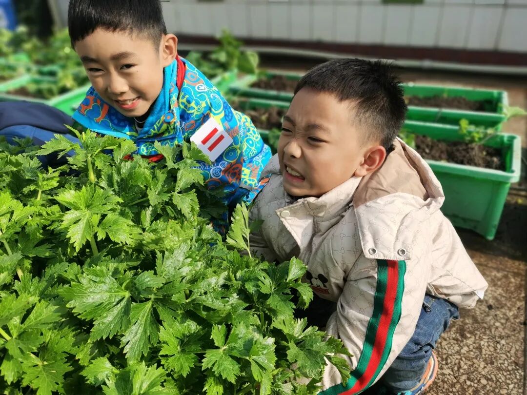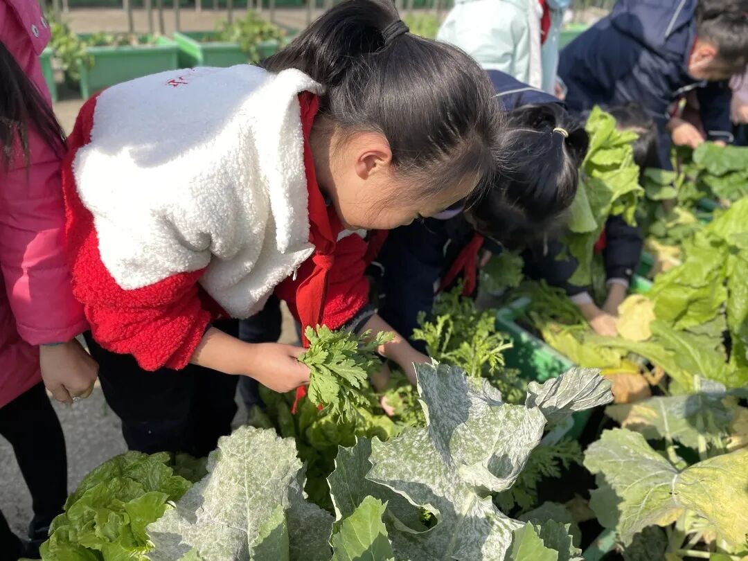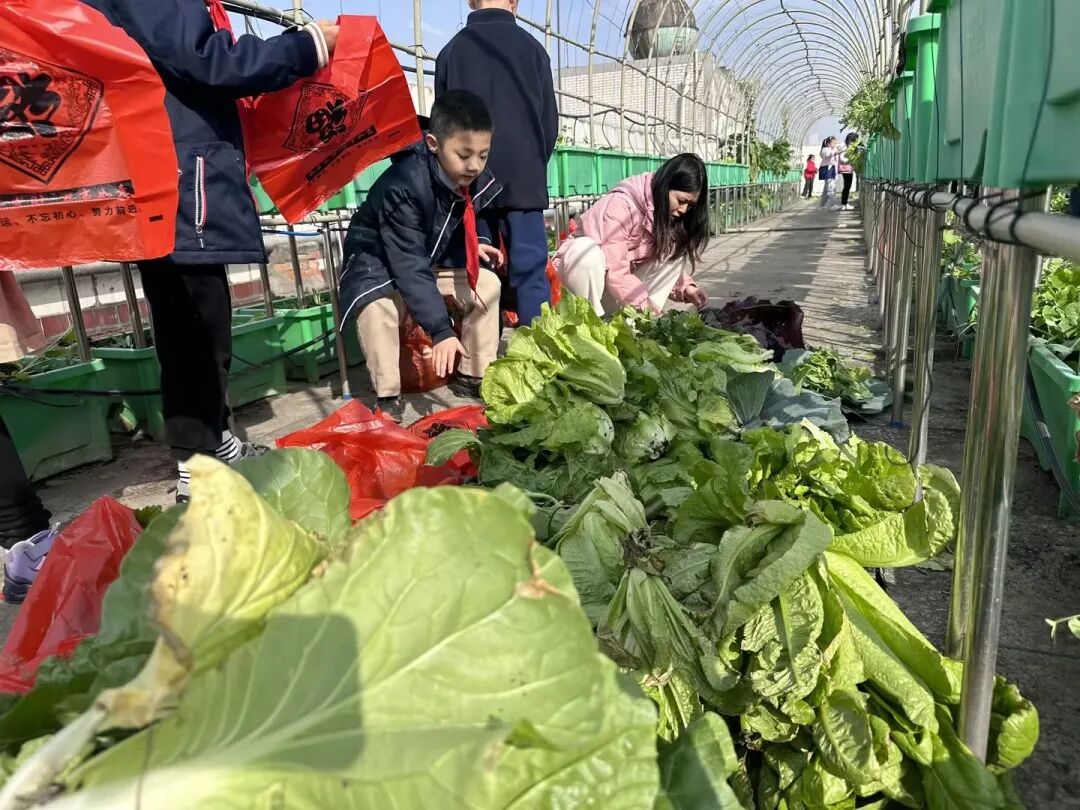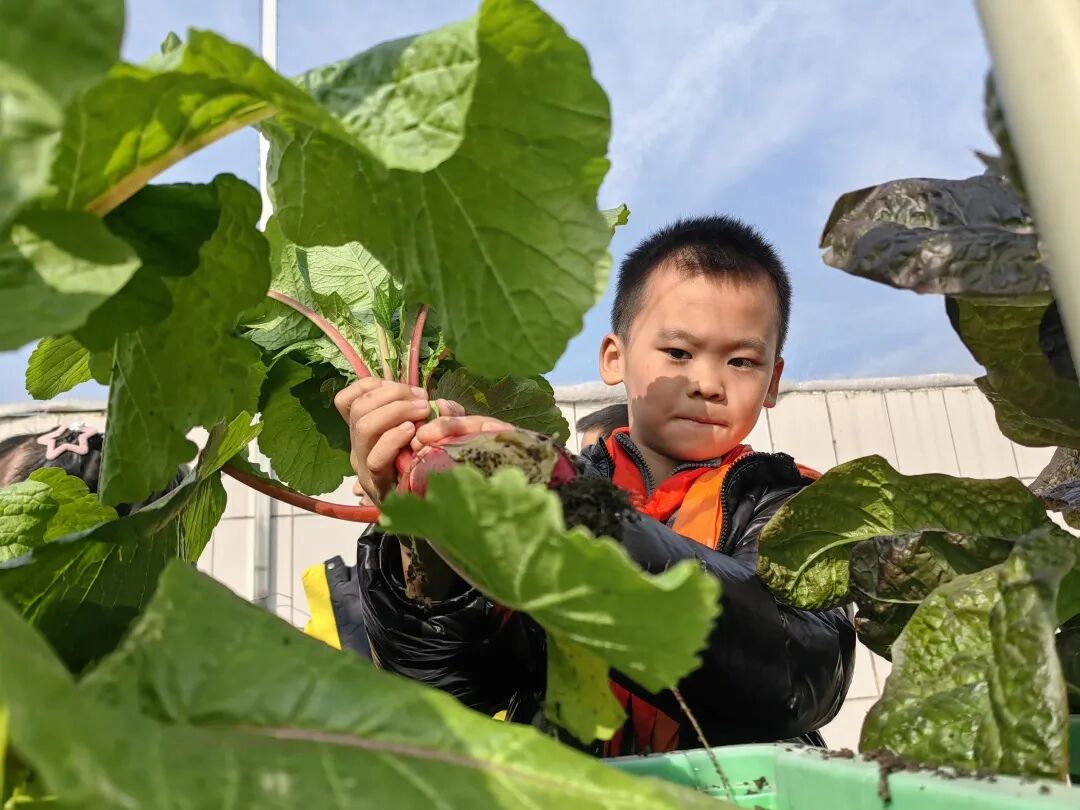 经过辛勤劳作、精心照料,“梦想庄园”里长满了各种各样的无公害蔬菜,呈现出一派丰收的景象。看着自己亲手种植的蔬菜大丰收,华实娃们的喜悦溢于言表。