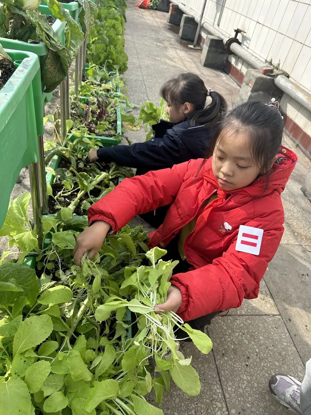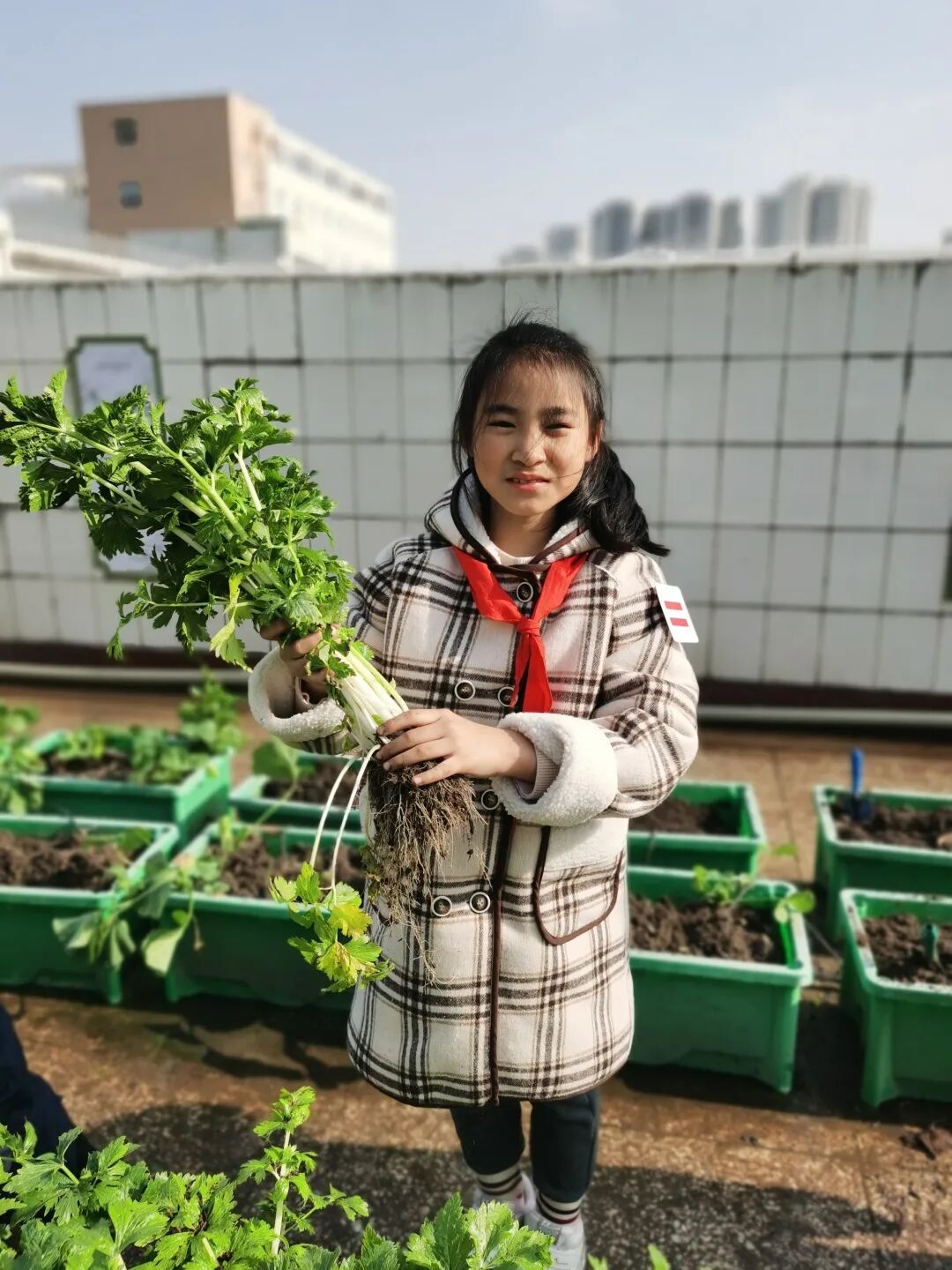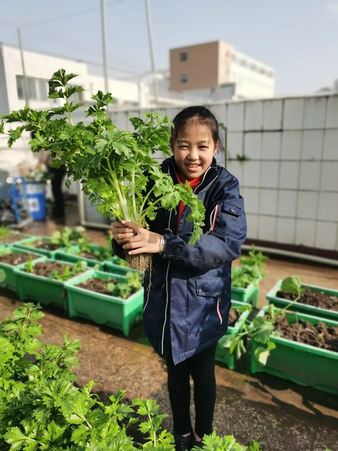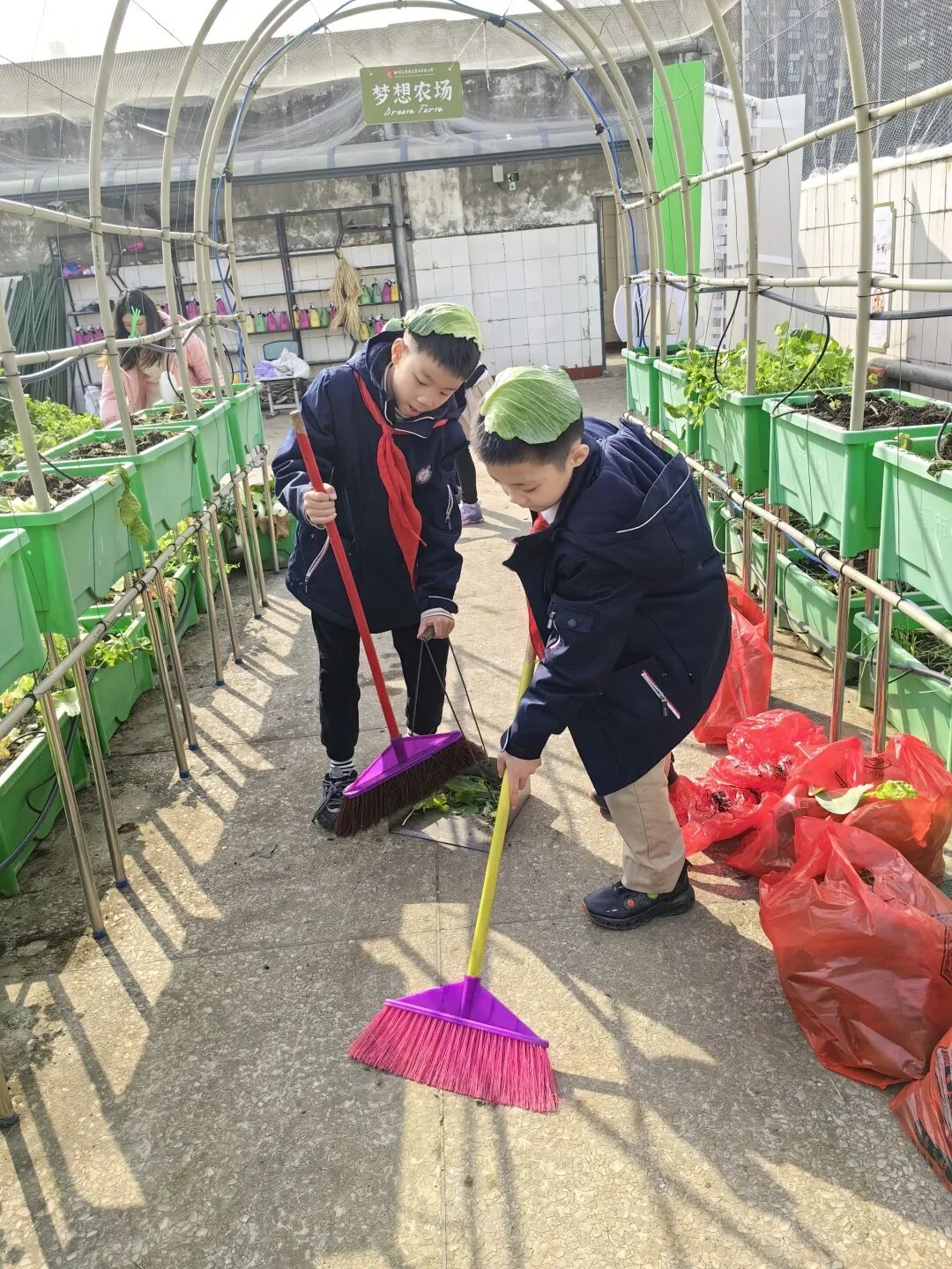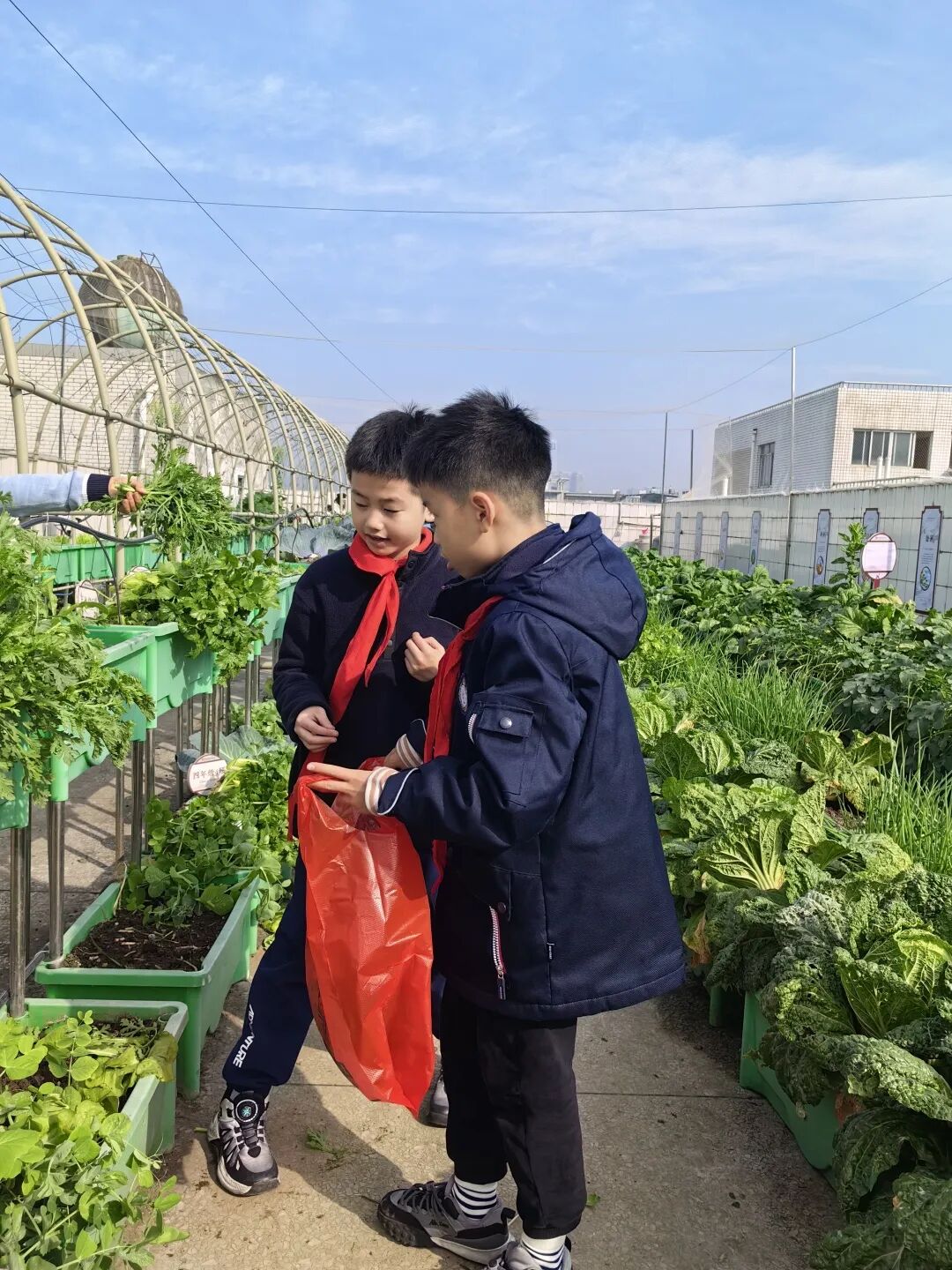 经过辛勤劳作、精心照料,“梦想庄园”里长满了各种各样的无公害蔬菜,呈现出一派丰收的景象。看着自己亲手种植的蔬菜大丰收,华实娃们的喜悦溢于言表。