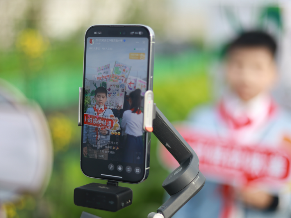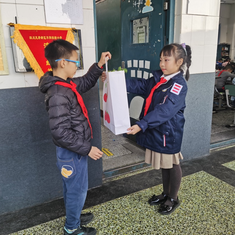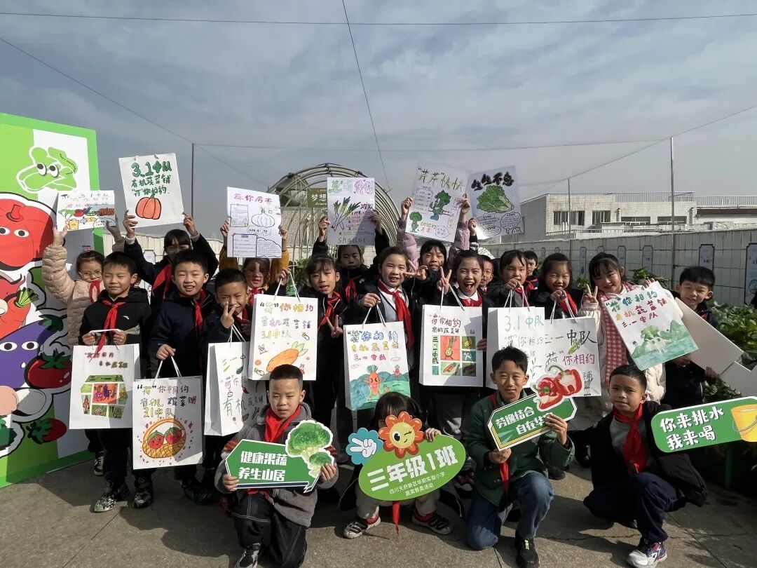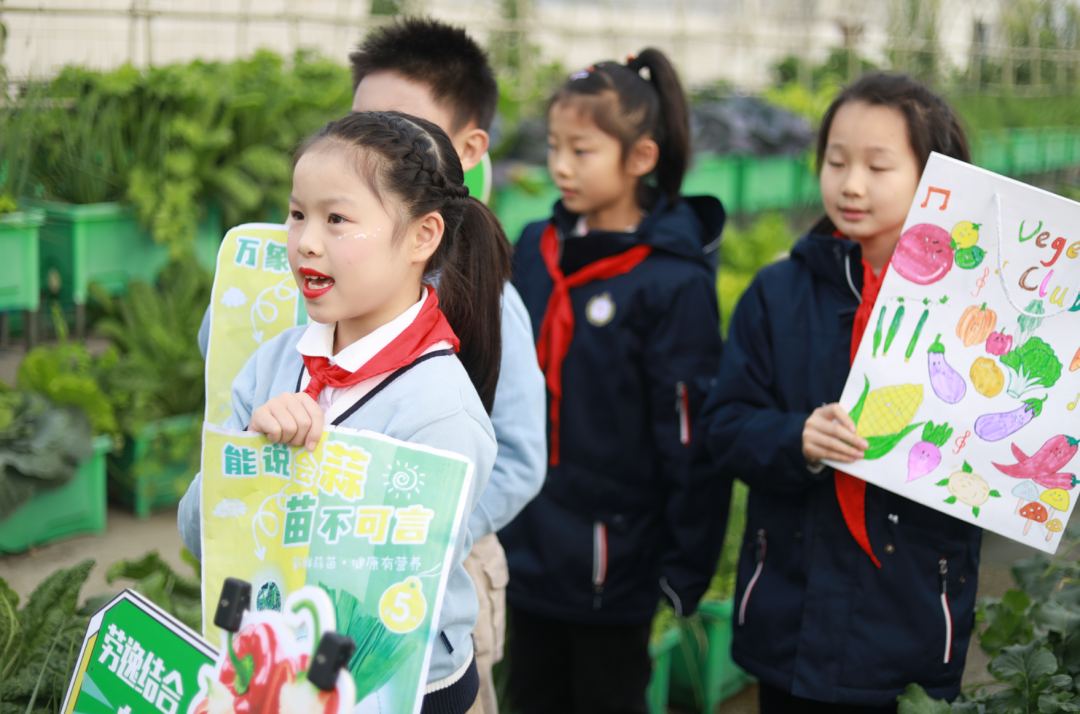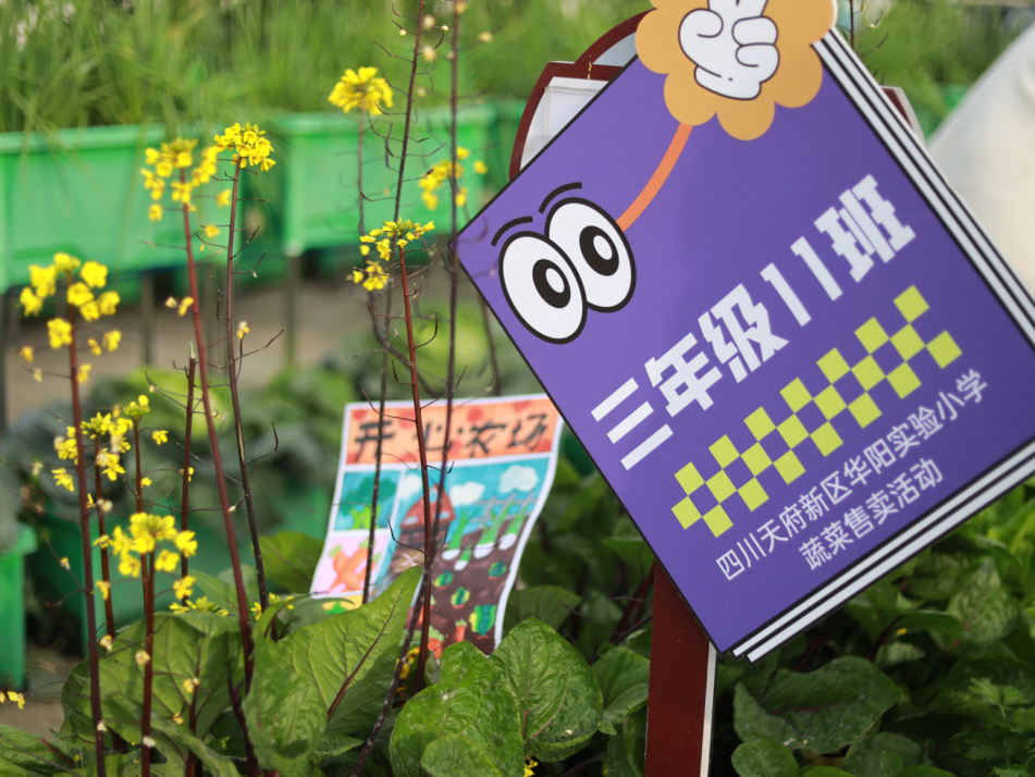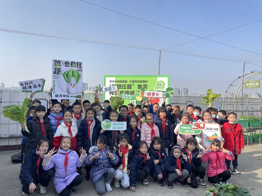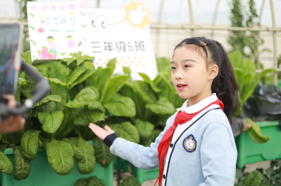 “欢迎来到华阳实验小学直播间!3、2、1,上链接!”“走过!路过!不要错过”“无公害,无污染,欢迎选购!”“这是我们班基地种的蔬菜,芥菜、大白菜、芥蓝,很新鲜,买点回去尝尝!”……