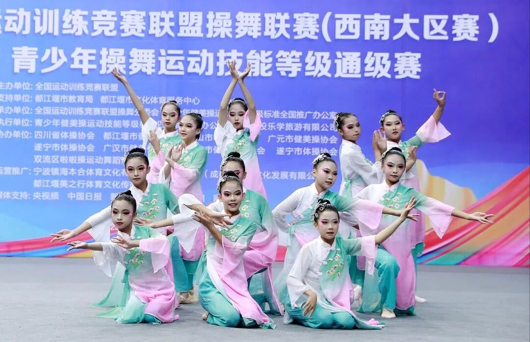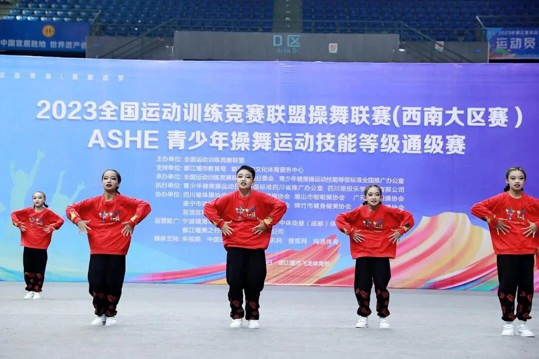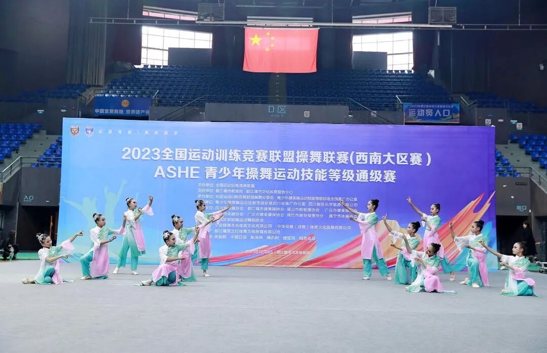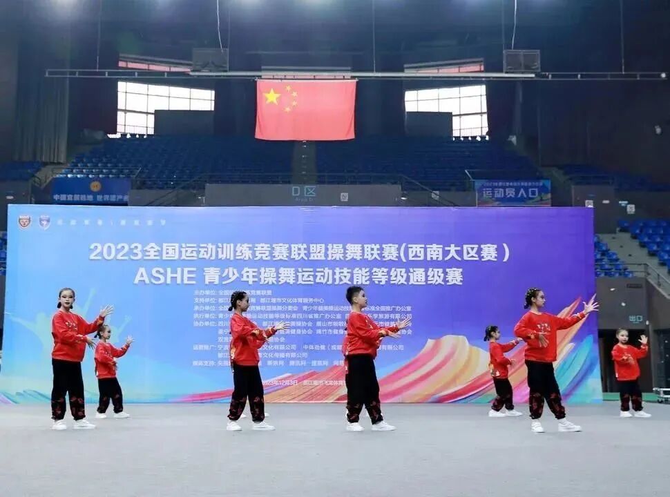 2023年12月3日,由全国运动训练竞赛联盟主办,全国运动训练竞赛联盟操舞分委会等承办的2023全国运动训练竞赛联盟操舞联赛(西南大区赛) 暨 ASHE 青少年操舞运动技能等级通级赛在四川省成都市都江堰飞龙体育馆举行。