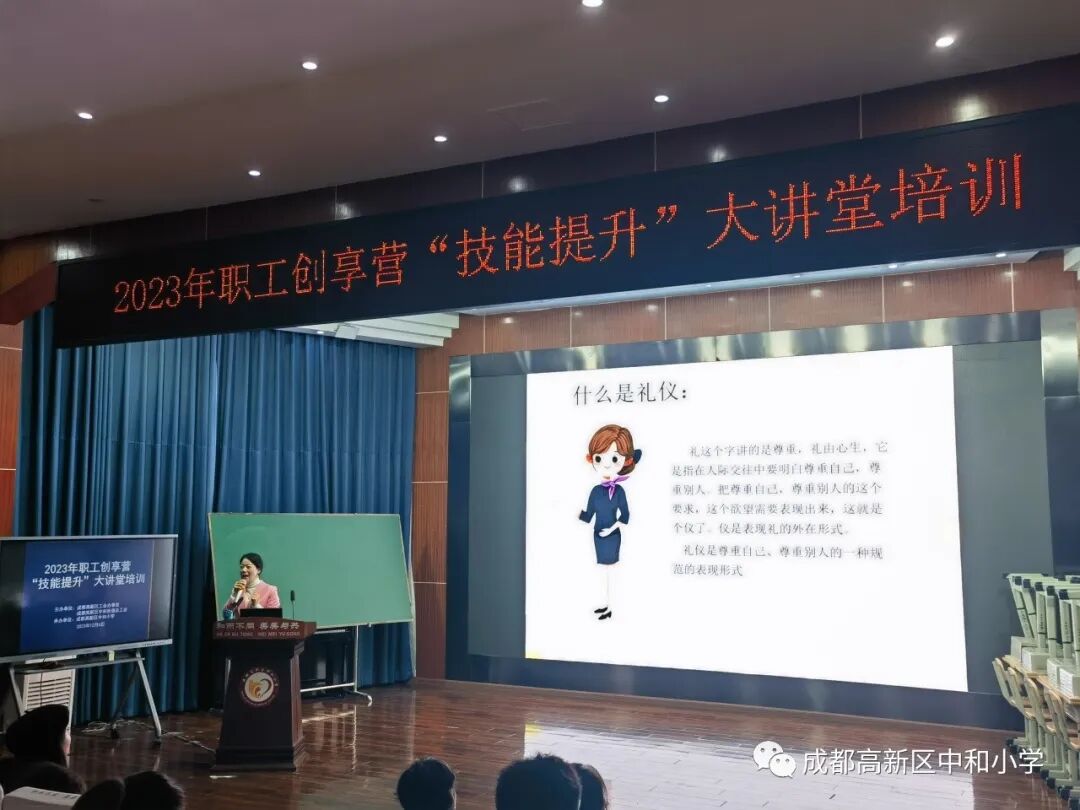 为全面提升我校教师文明礼仪素养,塑造师者风范,进一步提高教师的内在素质与外在形象,12月6日上午,我校在阶梯教室开展了教师礼仪专题工会培训活动,邀请到罗丽萍老师为我校全体教师带来了一场题为《如何塑造完美职业形象》的专题培训。