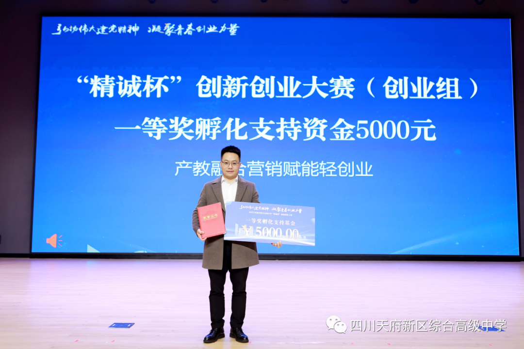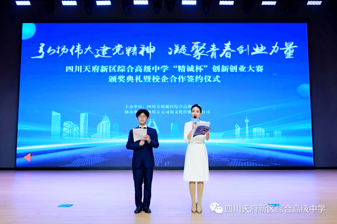 12月5日,四川天府新区综合高级中学“精诚杯”首届创新创业大赛圆满完成收官之战。四川天府新区社区治理和社事局相关部门负责人、知名企业代表、创业导师代表、学校师生等500余人出席颁奖典礼,共同见证校企合作协议签订仪式。
