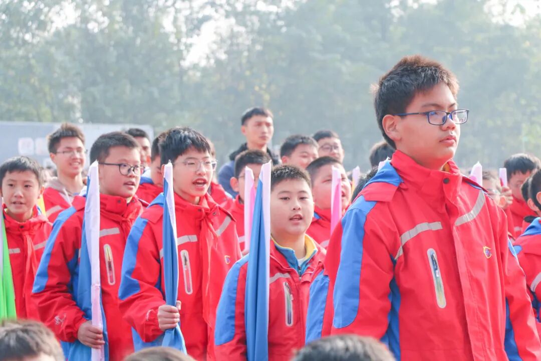 入场仪式上,各班的方阵清爽整肃,英姿飒爽,排着整齐的队列,喊着振奋人心的口号,踏着有力的步伐,激情饱满、朝气蓬勃,初冬的校园充满了洋洋的暖意!