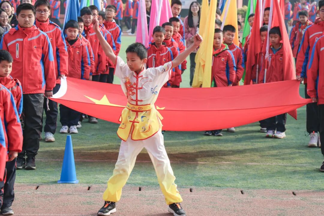 12月4日上午9点,一缕灿烂的阳光刚刚温暖了微凉的清晨,国旗队、彩旗队、裁判方队及各班级代表队喊着嘹亮的口号走进了学校运动场,一面面彩旗迎风飘扬,喜庆而热烈,已准备好为我们的运动健儿们摇旗呐喊。