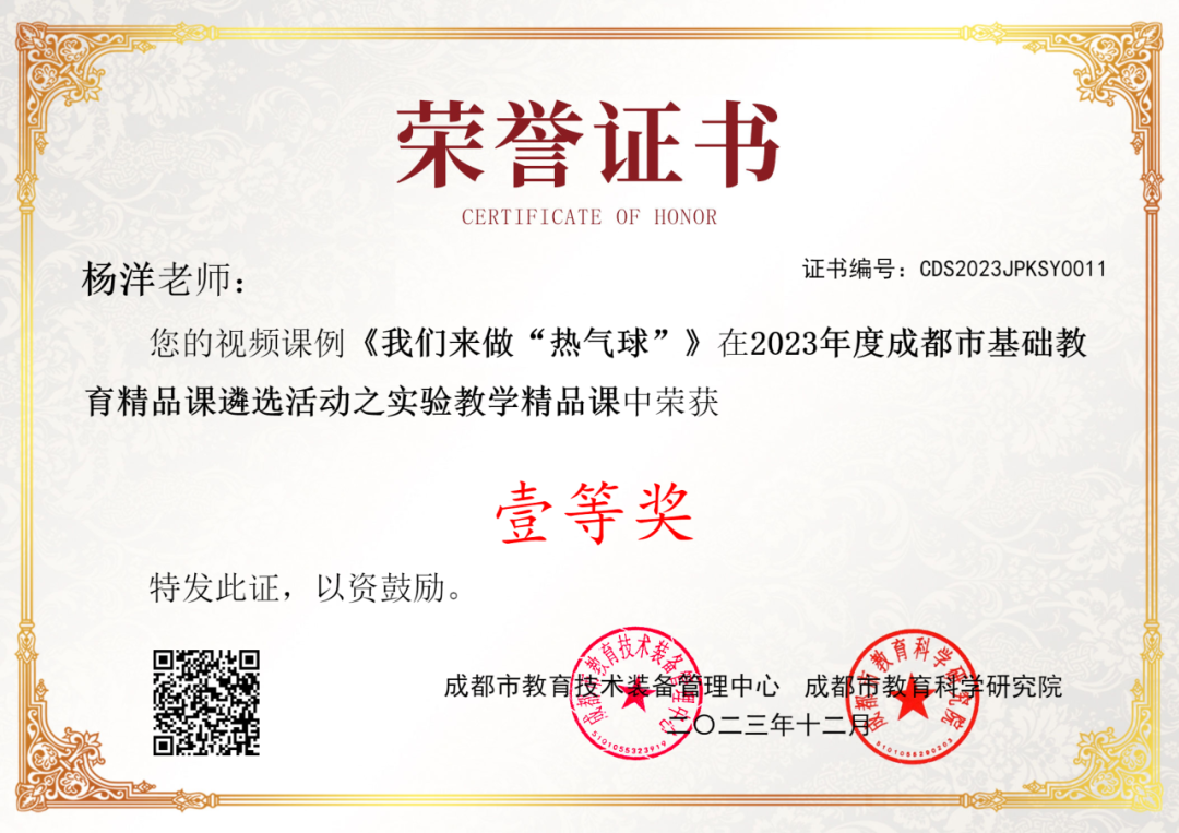 为贯彻落实“双减”文件精神,提升教师课堂教学能力,提高教育教学质量,做强学校主阵地,按照教育厅《关于进一步提高中小学课堂教学质量的指导意见》、市教育局《关于开展2023年度“课堂教学大比武”暨“基础教育精品课”遴选系列活动的通知》要求,成都市教育局组织开展了成都市2023年“课堂教学大比武”暨“基础教育精品课”活动。成都市双流区实验小学外国语学校组织老师们认真学习相关文件,鼓励大家积极主动地参与到精品课课例评选中。科学组杨洋老师在双流区级展评中,以优异的成绩晋级到了市级比赛,最终获得了成都市基础教育精品课遴选活动之实验教学教学精品课一等奖。