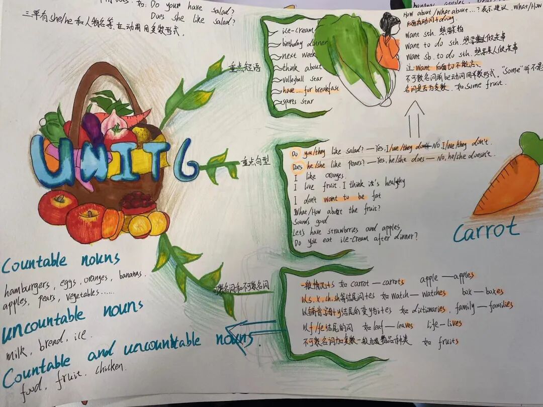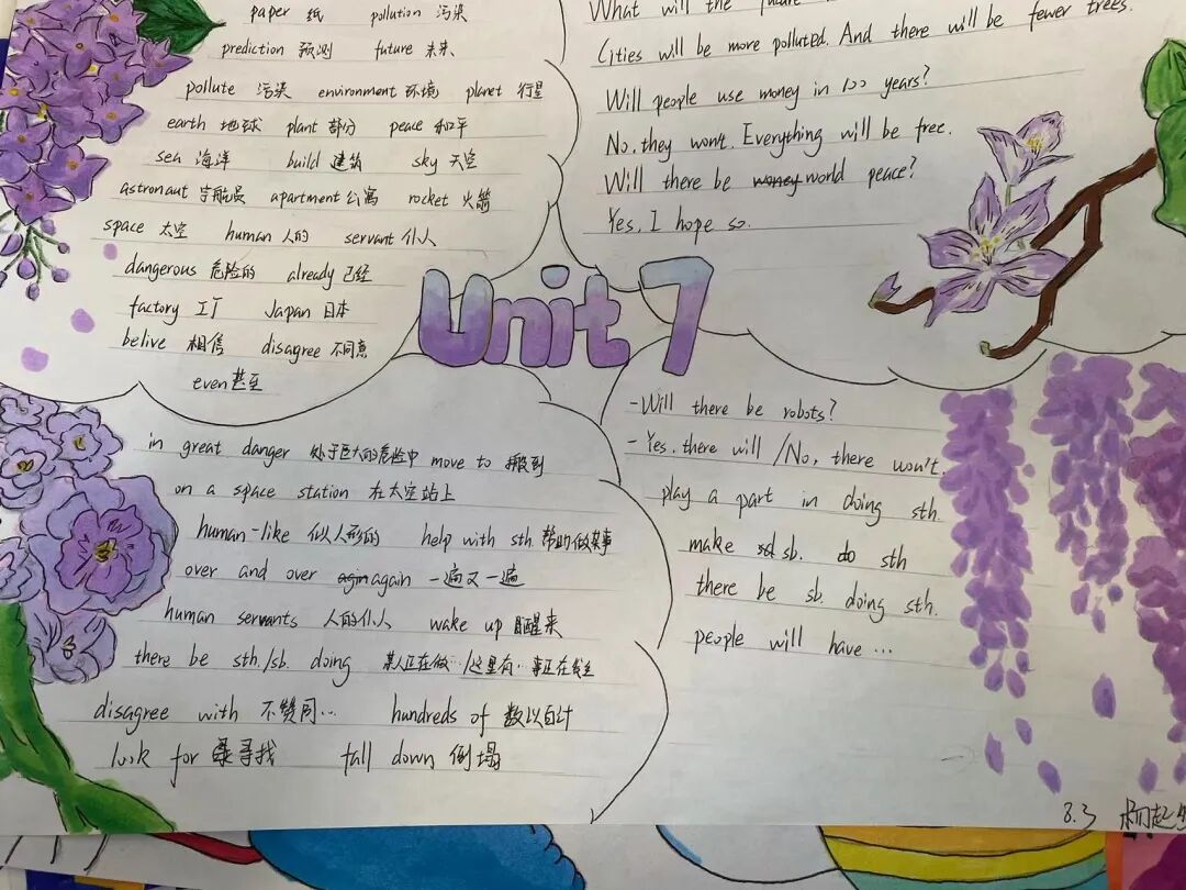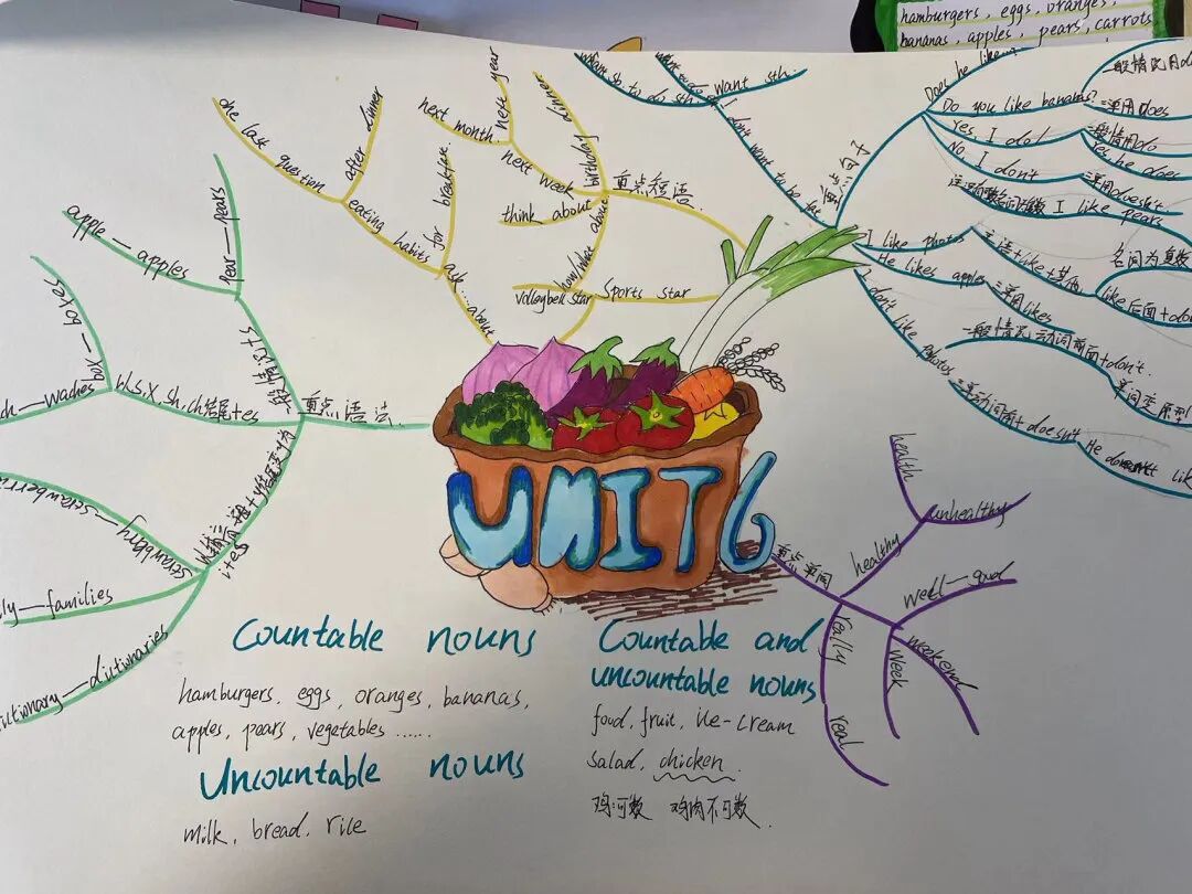 本次活动学生利用思维导图整合新旧知识点,让英语变得趣味无穷,彰显了英语的魅力。同学们在活动中共展英语思维、共育思维之花,唤醒脑海中的记忆,构建系统化的知识框架,编织美丽的英语世界!