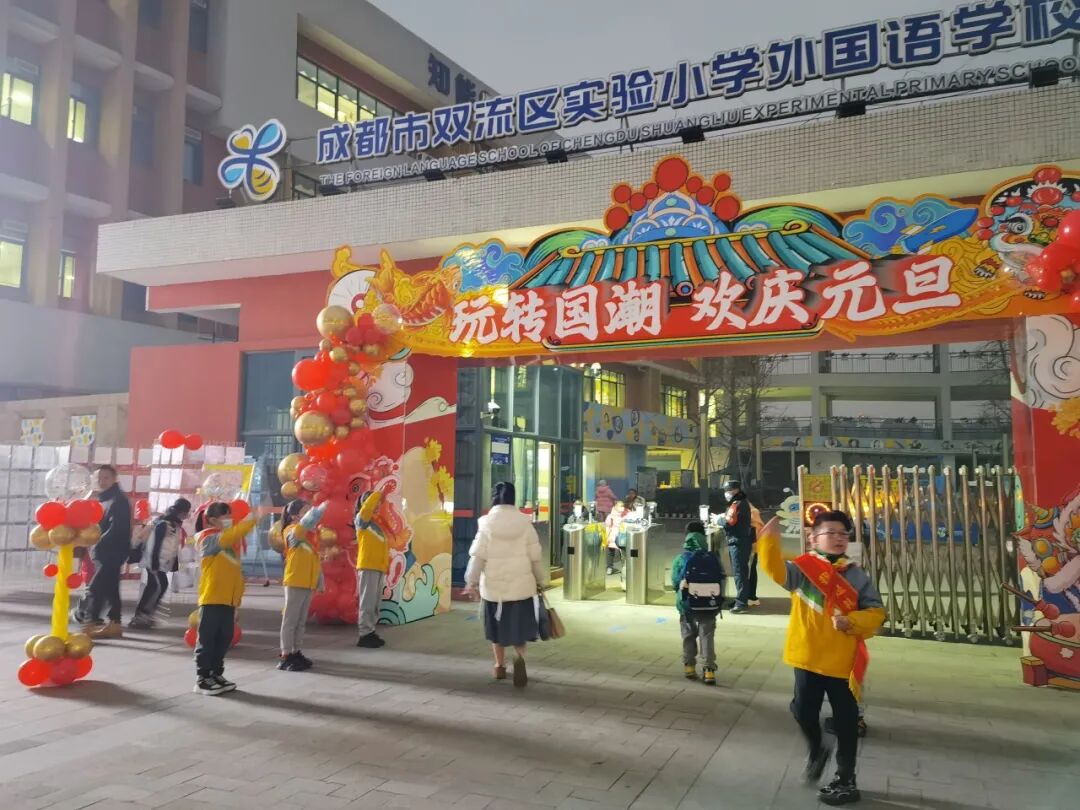 爆竹声中一岁除,春风送暖入屠苏。温暖开启祥龙年,多彩活动庆元旦。成都市双流区实验小学外国语学校第四届“幸福节”暨元旦庆祝活动在清晨拉开序幕。孩子们哼着“新年好”,踏着轻快的步伐步入校园。