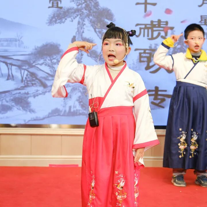语言表演2班的同学们以稚嫩的嗓音和纯真的表演,为大家呈现一场充满智慧和启迪的三字经表演。