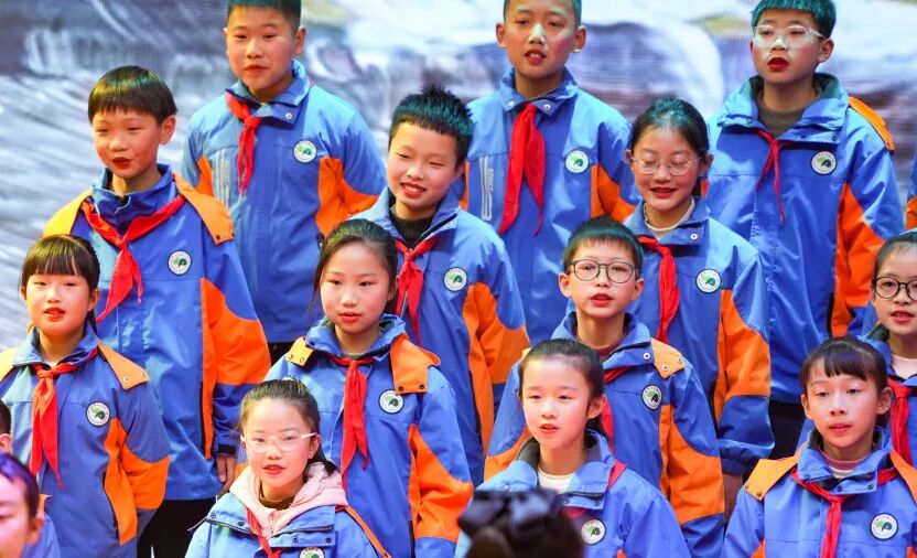 彭镇小学银杏合唱团带来的歌曲《勇气》让第一乐章完美收关,优美的和声唱出了彭小孩子如歌般乘风破浪的勇气。