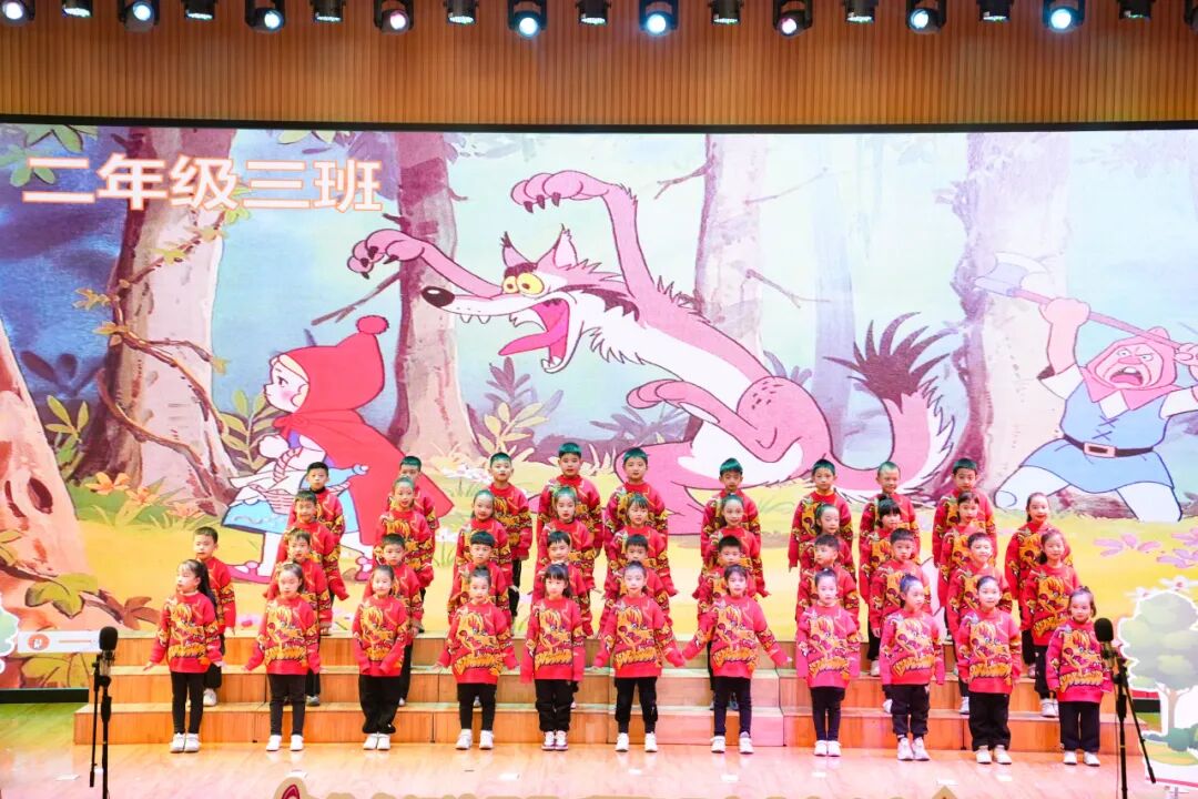 一年级八班的孩子们敲响了热闹的锣鼓声,给大家带来了浓浓年味的歌曲《龙咚锵》,他们稚嫩的童声,自信的表现收获了全场观众热烈的掌声。
