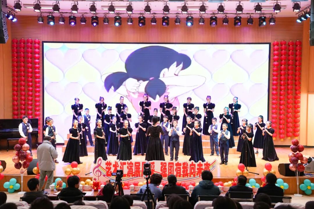作为开场节目的是学校“悦笛”社团带来的木笛合奏《哆啦A梦》,孩子们娴熟的吹奏技巧,极富表现力的演奏迎来在场观众的阵阵掌声。