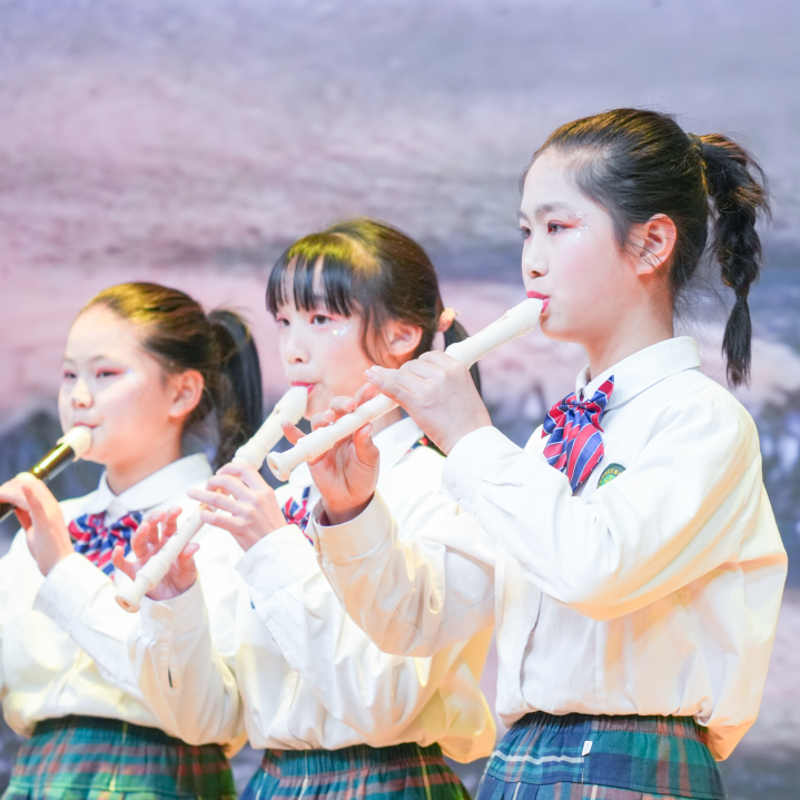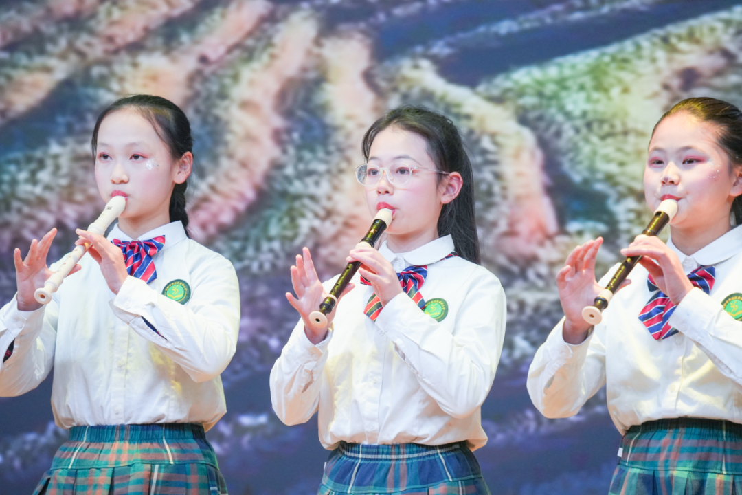 五年级孩子们的竖笛合奏《牧场上的家》,音符赞美学校如家般温暖、老师如亲人般亲切。
