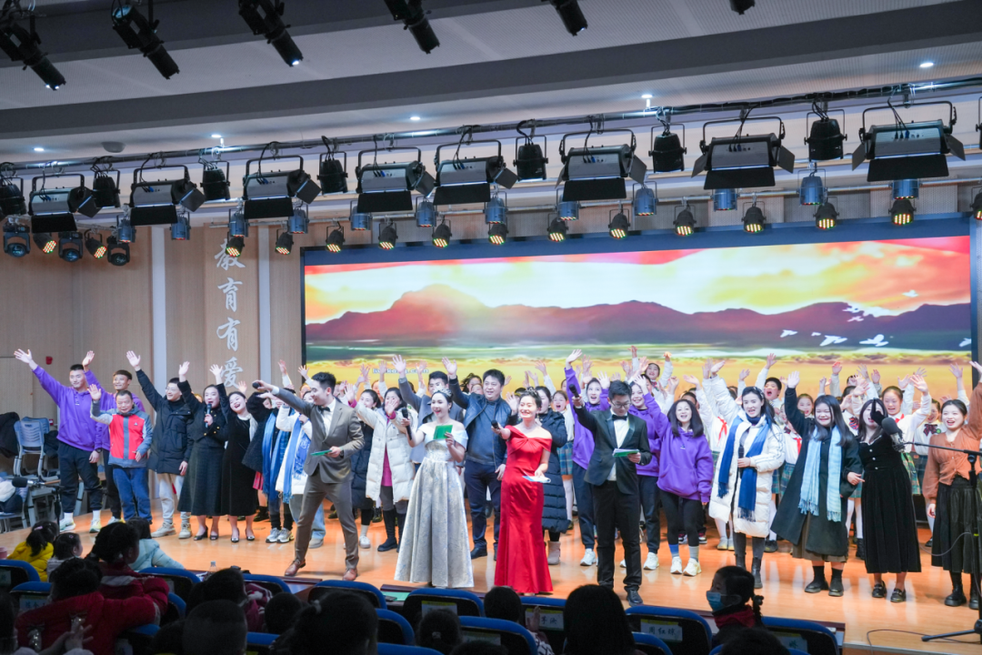 最后学校艺体组全体老师,深情歌唱《同一首歌》,用音乐与昨天告别,用音乐与明天相拥。
