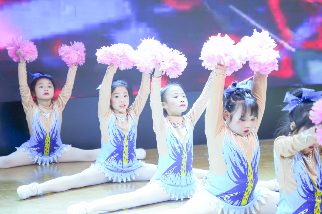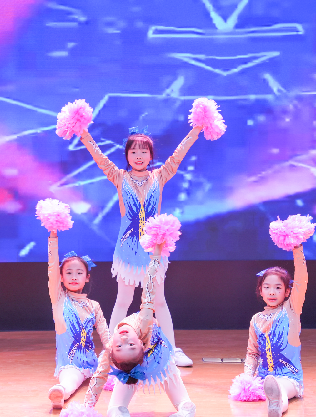 啦啦操队员们身着整齐的服装,手拿花球踏着动感的节拍,动作张弛有力,精彩的表演赢来了现场的阵阵尖叫和欢呼。