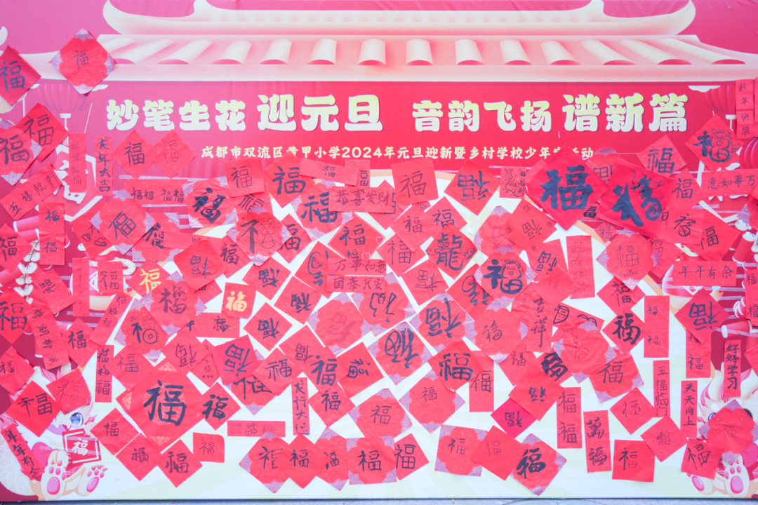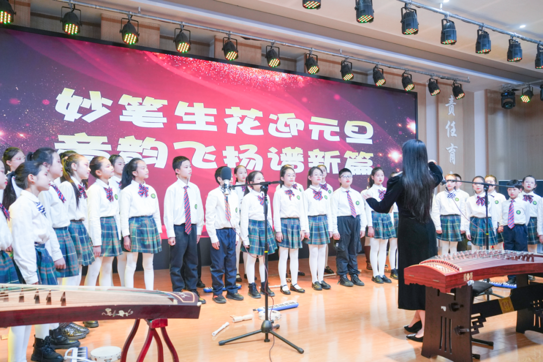 日月其迈,时盛岁新!伴随着冬日的暖阳,2024年元旦如约而至。为进一步落实双流区黄甲小学德育课程,展示黄甲小学美育课程成果,为师生搭建展示平台,经学校德育处策划,艺体组组织实施,黄甲小学“妙笔生花迎元旦,音韵飞扬谱新篇”的主题活动于12月29日下午在学术厅隆重举行,黄甲学子欢聚一堂,憧憬未来,恭贺新禧!