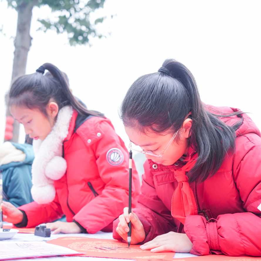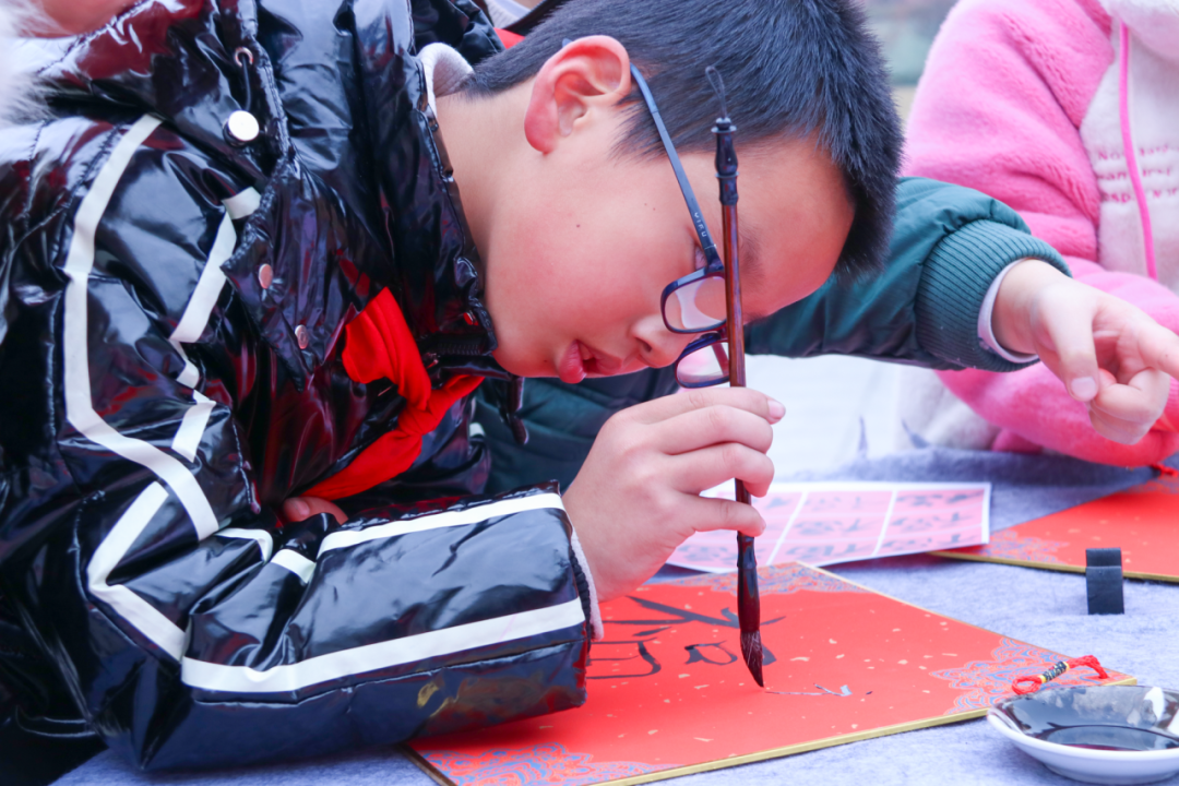 瞧,孩子们和老师们一笔一画,开启福禄寿喜,写下的不仅仅是祝福,还是对美好生活的愿景。