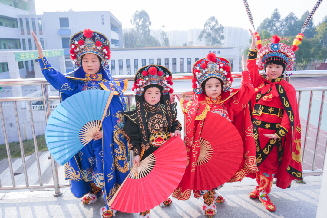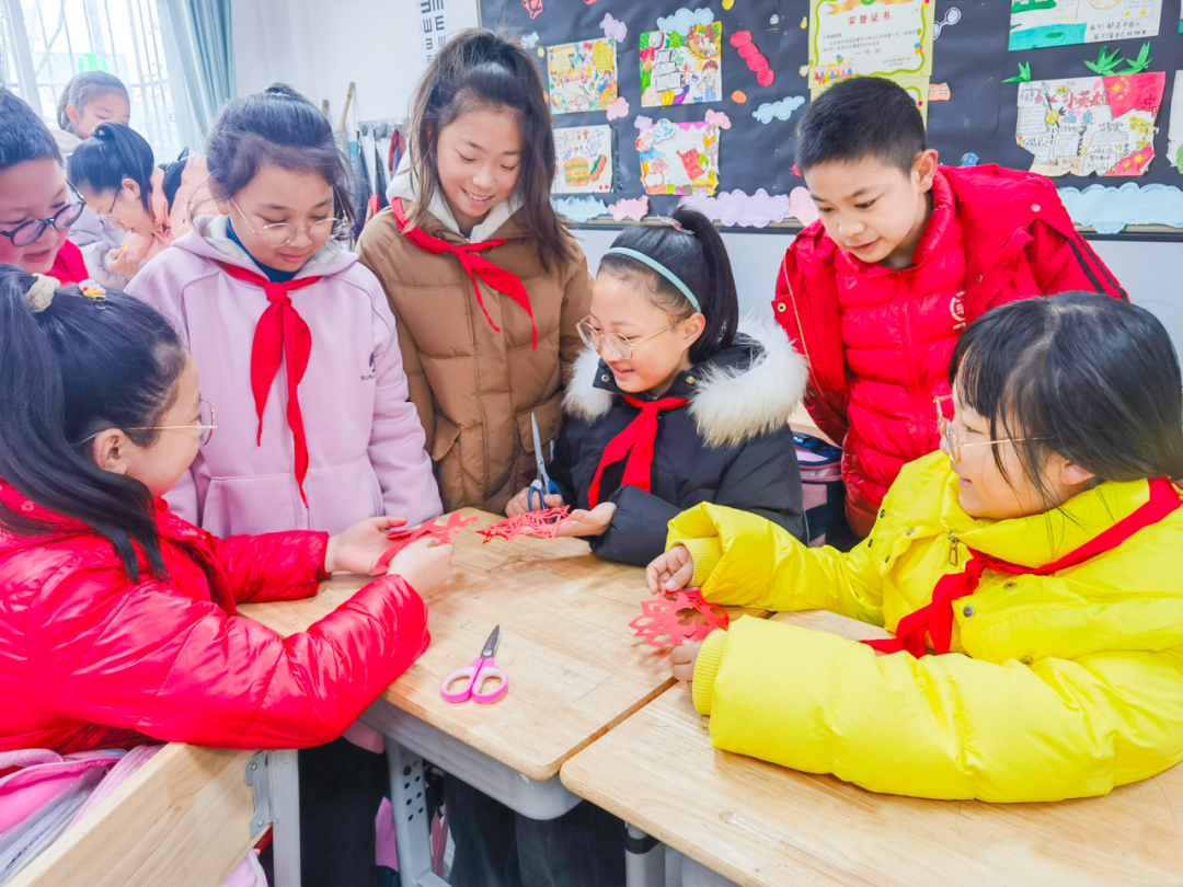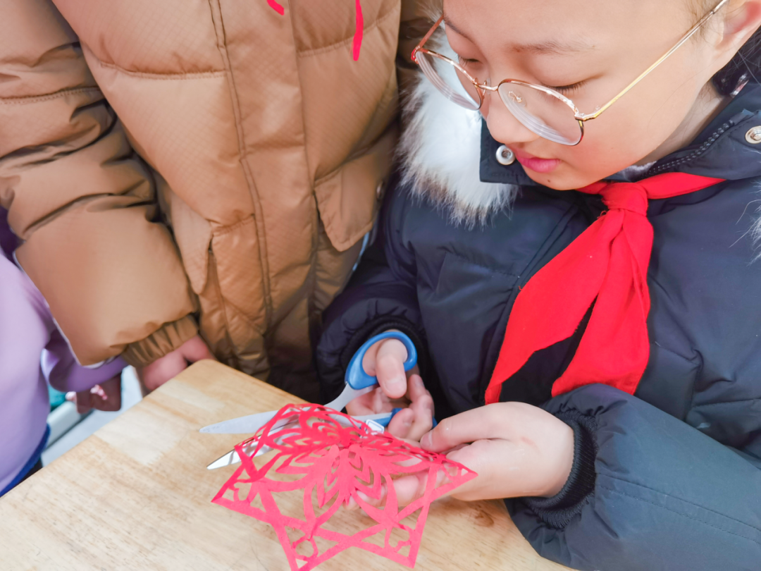 一张张红色的纸,在孩子们的手中,百“花”齐放,朵朵娇艳似火。